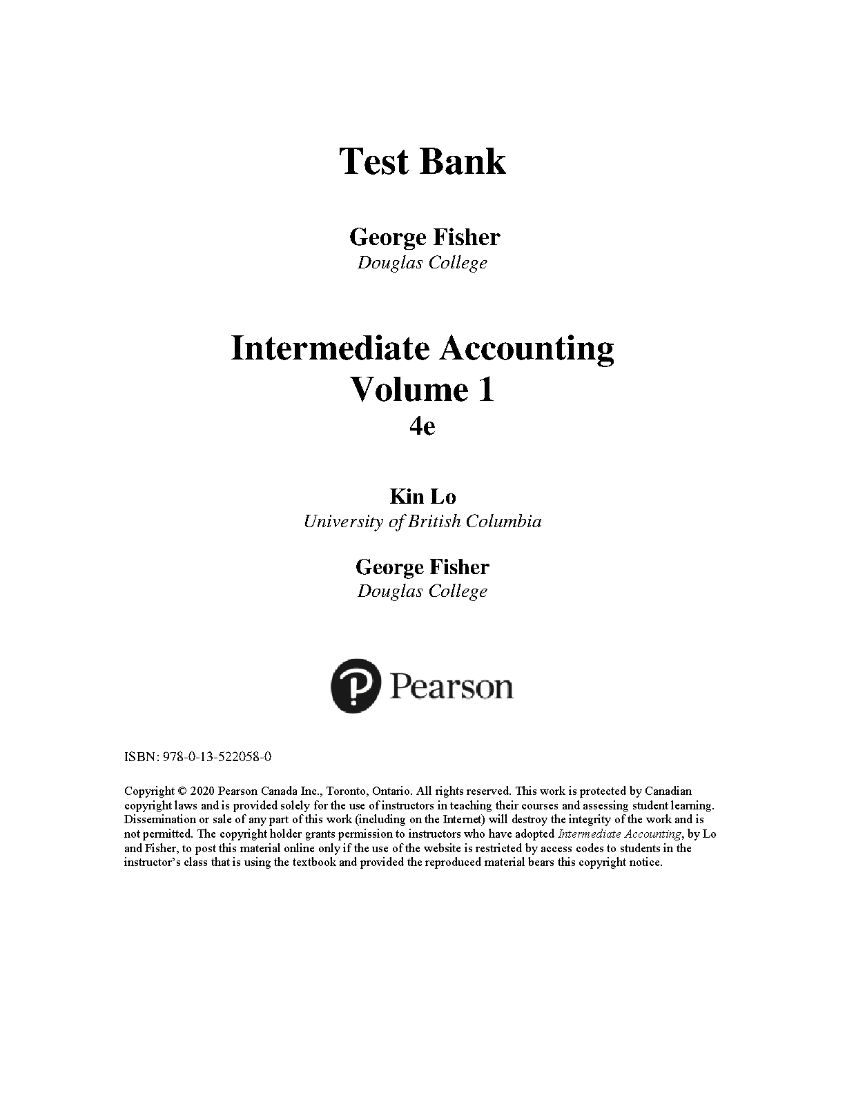 Test Bank for Intermediate Accounting, Volume 1, 4th Canadian Edition by Kin Lo & George Fisher
