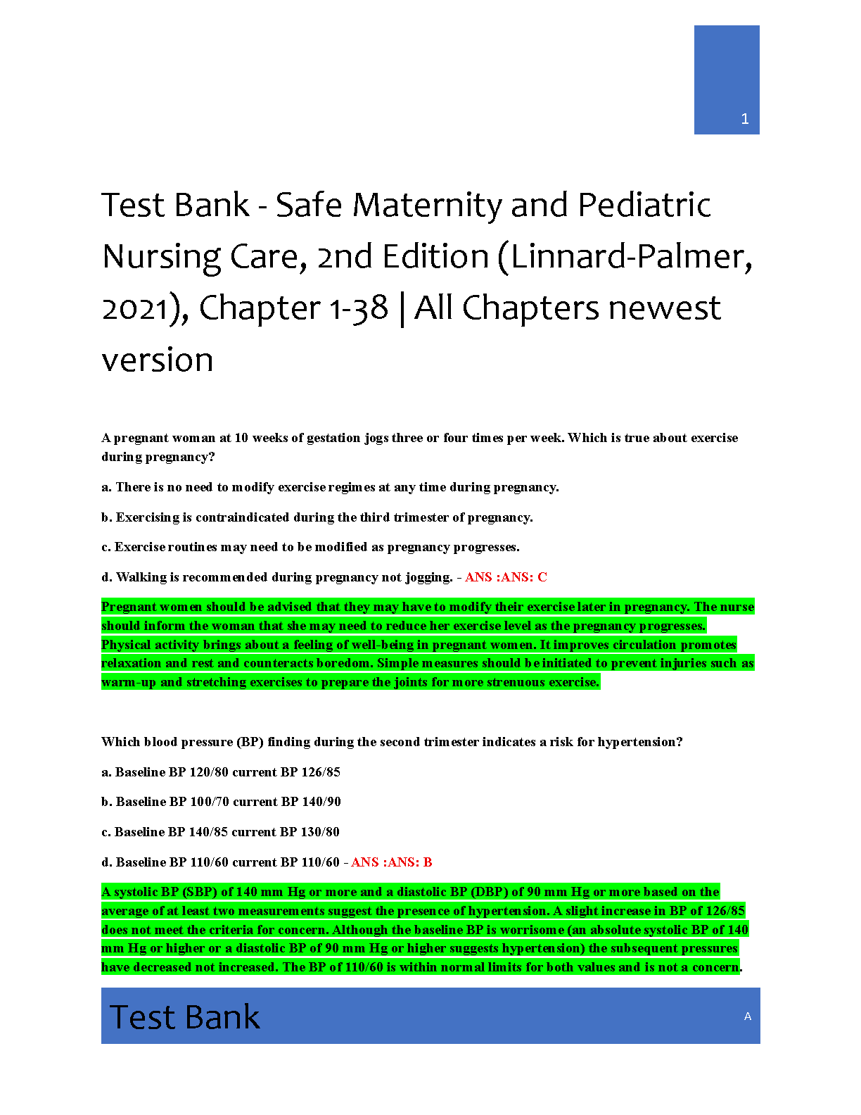 Master your nursing course with the complete Test Bank for Safe Maternity and Pediatric Nursing Care, 2nd Edition. Authored by Luanne Linnard-Palmer and Gloria Haile Coats, this comprehensive resource covers all 38 chapters. It provides a vast collection of exam-style questions, complete with detailed answers and rationales, to help you grasp key concepts, enhance your critical thinking skills, and confidently prepare for your exams. Ideal for nursing students aiming to excel in their maternity and pediatric care studies.