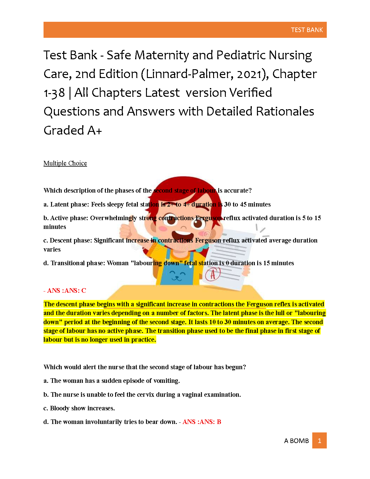 Achieve academic excellence with the official Test Bank for 'Safe Maternity and Pediatric Nursing Care, 2nd Edition' by Lisa Linnard-Palmer and Ellen Christiansen. This comprehensive resource covers every chapter (1-38), offering an extensive collection of verified questions complete with detailed answers and rationales. It's the ultimate study tool designed to help you master complex nursing concepts, excel in your exams, and solidify your understanding of maternity and pediatric care. Prepare effectively and boost your grades with this essential guide.