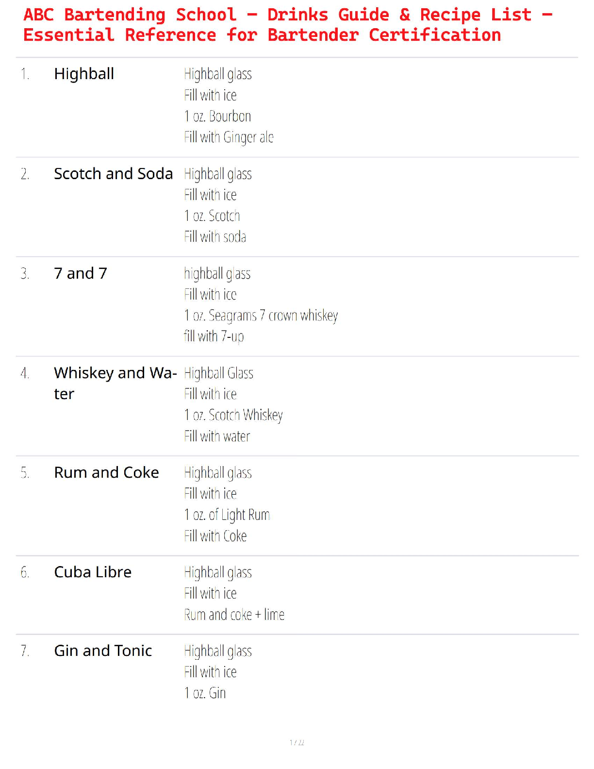 Unlock your bartending career with the ultimate study companion from ABC Bartending School. This comprehensive Drinks Guide & Recipe List for the 2025/2026 academic year provides the essential knowledge you need to ace your bartender certification exam. Featuring a detailed list of classic and popular cocktails, from the Highball to the Gin and Tonic, this guide simplifies the learning process. Master every recipe and technique to ensure you pass on your first attempt and avoid costly resits. Download now and start your journey to becoming a certified professional bartender.