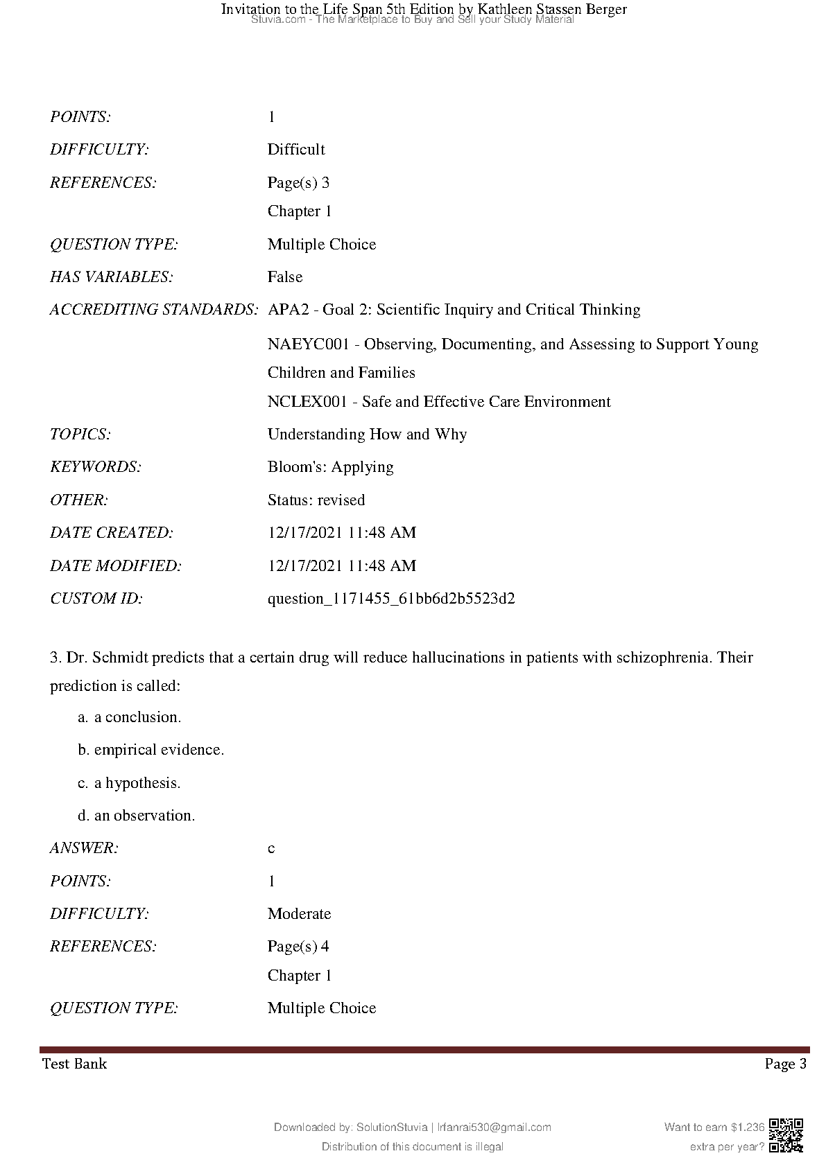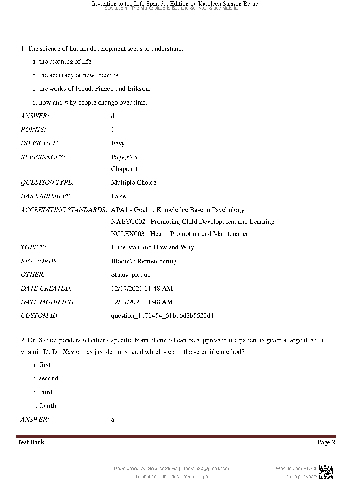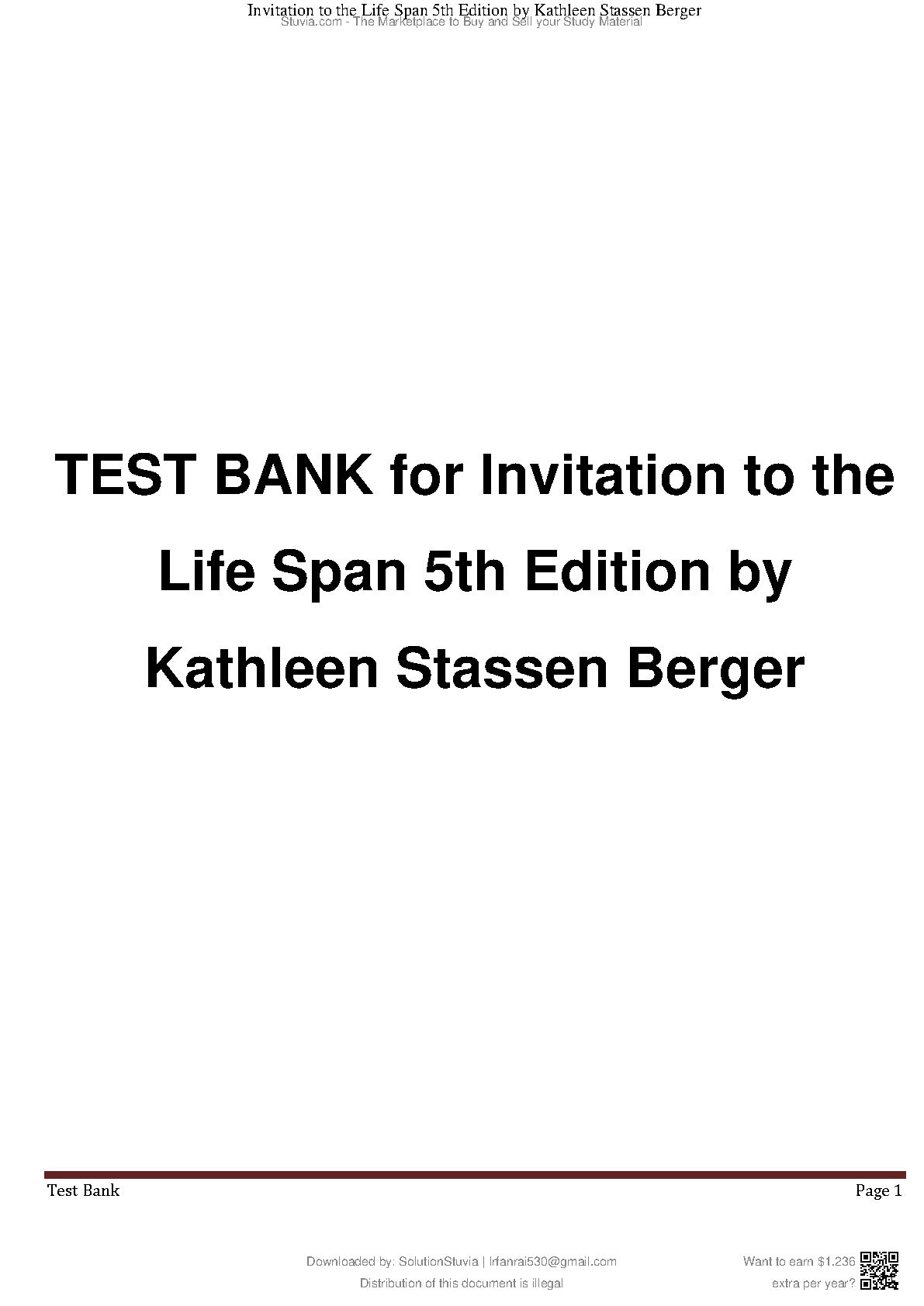 Test Bank for Invitation to the Life Span, 5th Edition by Kathleen Stassen Berger
