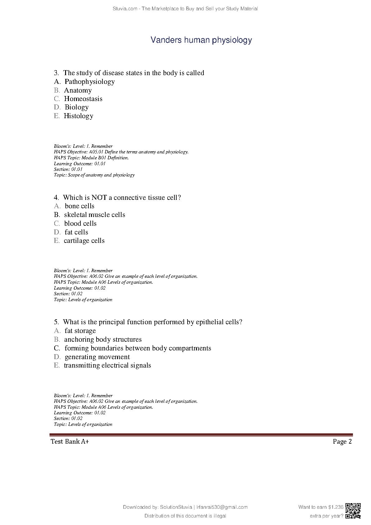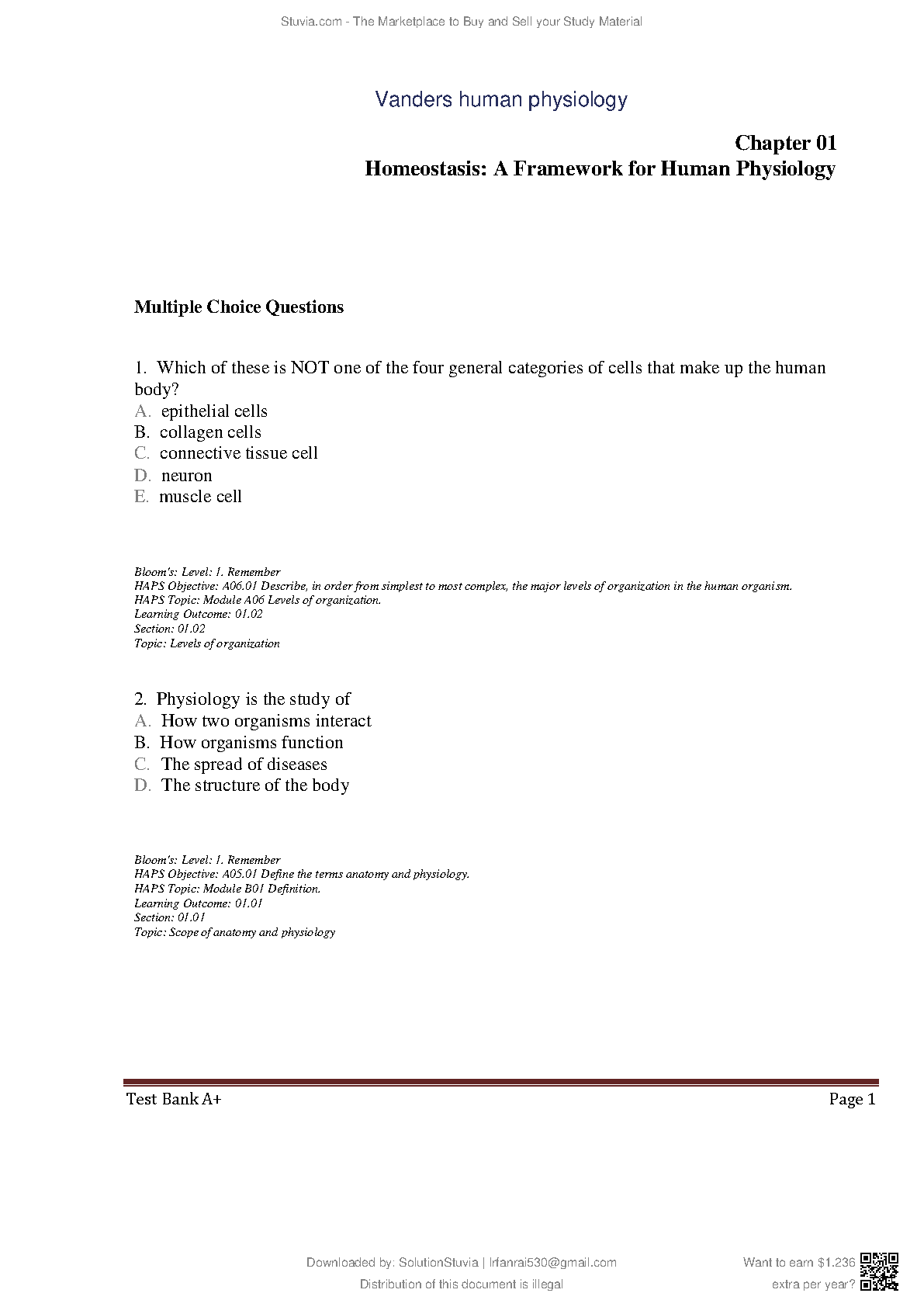 Master your physiology course with the official Test Bank for Vander's Human Physiology: The Mechanisms of Body Function, 16th Edition. Authored by Eric Widmaier, Hershel Raff, and Kevin Strang, this comprehensive resource provides a vast collection of exam-style questions covering every chapter of the textbook. Instantly downloadable, this test bank is designed to rigorously test your understanding of core concepts, from homeostasis to complex body systems. It's the ultimate study tool for acing your exams, identifying areas for improvement, and deeply understanding human physiology.
