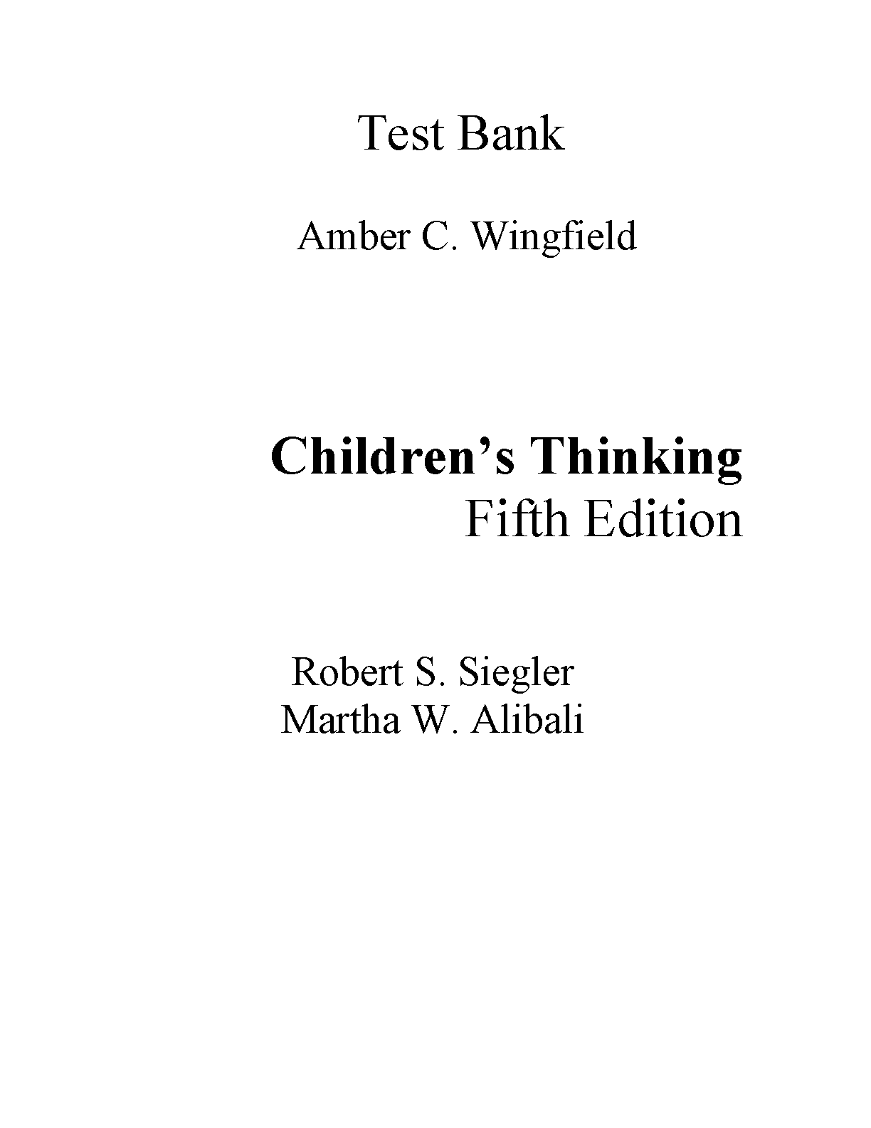 Test Bank for Children's Thinking, 5th Edition by Robert S. Siegler, Martha W. Alibali & Amber C. Wingfield
