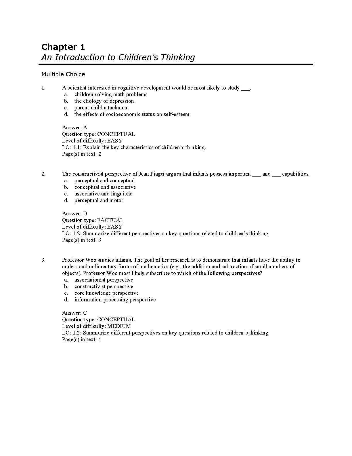 Master the concepts of child cognitive development and excel in your course with the authentic Test Bank for 'Children's Thinking,' Fifth Edition. This comprehensive study aid, crafted to accompany the textbook by Robert S. Siegler and Martha W. Alibali, features a wide array of practice questions and answers. It is the ultimate tool for students to test their knowledge, prepare effectively for exams, and solidify their understanding of how children think and learn. Download the complete Test Bank today and take the first step towards academic success in your psychology course.