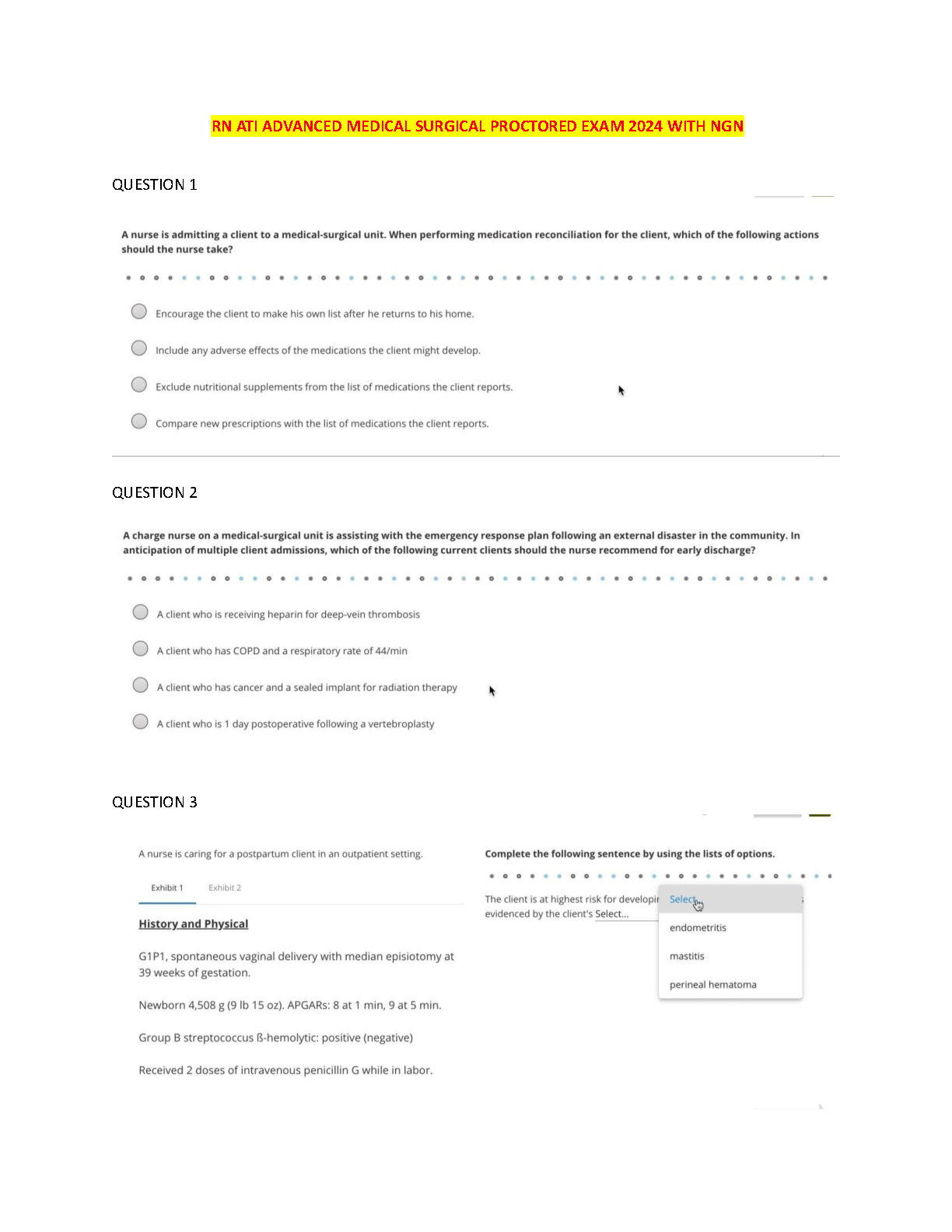 Ace your upcoming RN ATI Advanced Medical-Surgical Proctored Exam with our definitive 2025/2026 study resource. This meticulously compiled test bank is your key to success, featuring a complete collection of 2024 exam questions, including the challenging NGN-style items. Dive deep into crucial nursing competencies, from complex medication management and emergency preparedness to specialized post-operative and postpartum care. Our guide is structured to ensure you grasp the core material, build critical thinking skills, and walk into your exam fully prepared to pass on the first try. Stop worrying about resits and start your journey to becoming a certified nursing professional today!