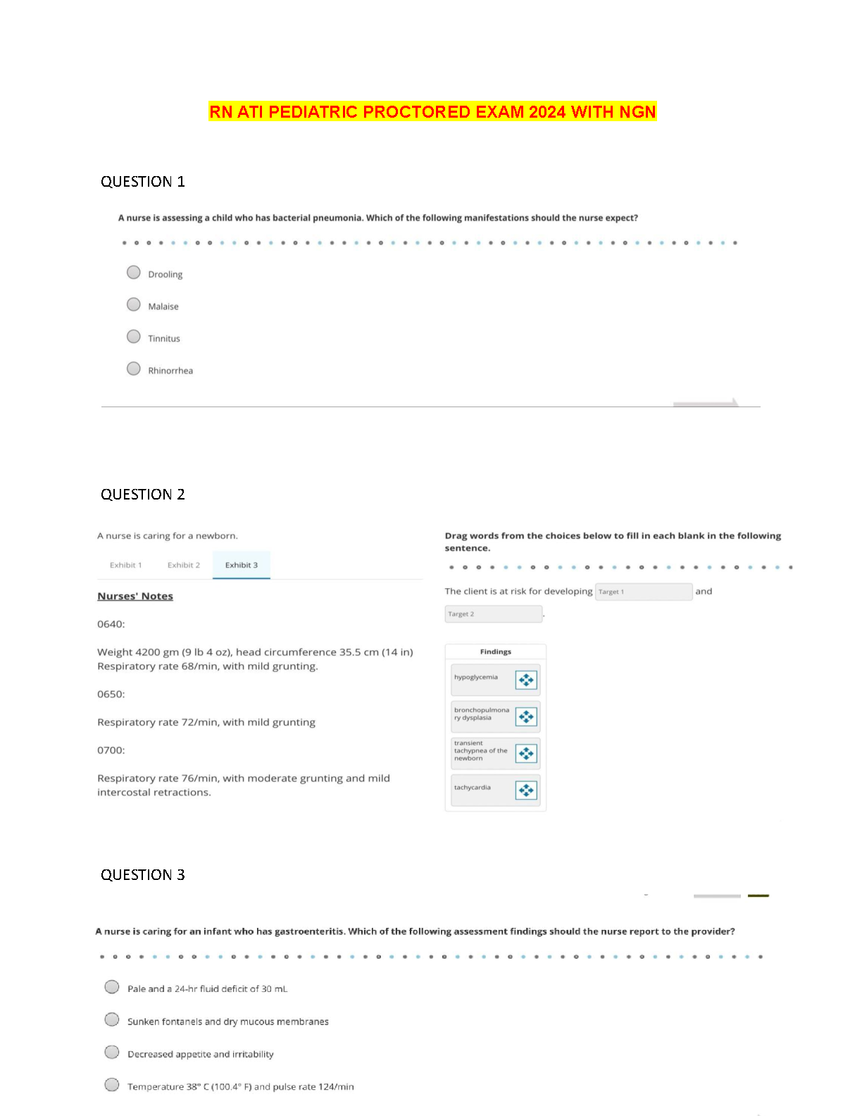 ATI RN Pediatric Proctored Exam 2024 Test Bank with NGN Questions & Verified Answers