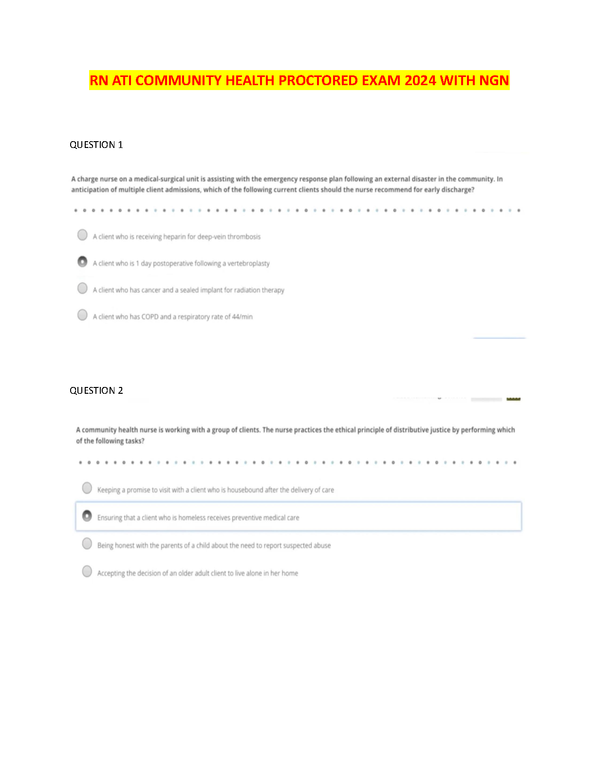 ATI Community Health RN Proctored Exam 2024 Test Bank with NGN Questions and Answers by Assessment Technologies Institute | Pass on Your First Attempt