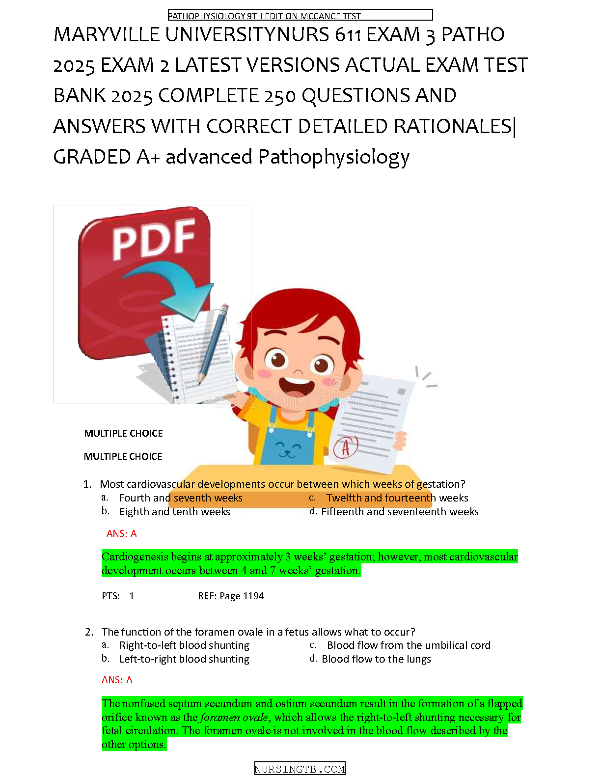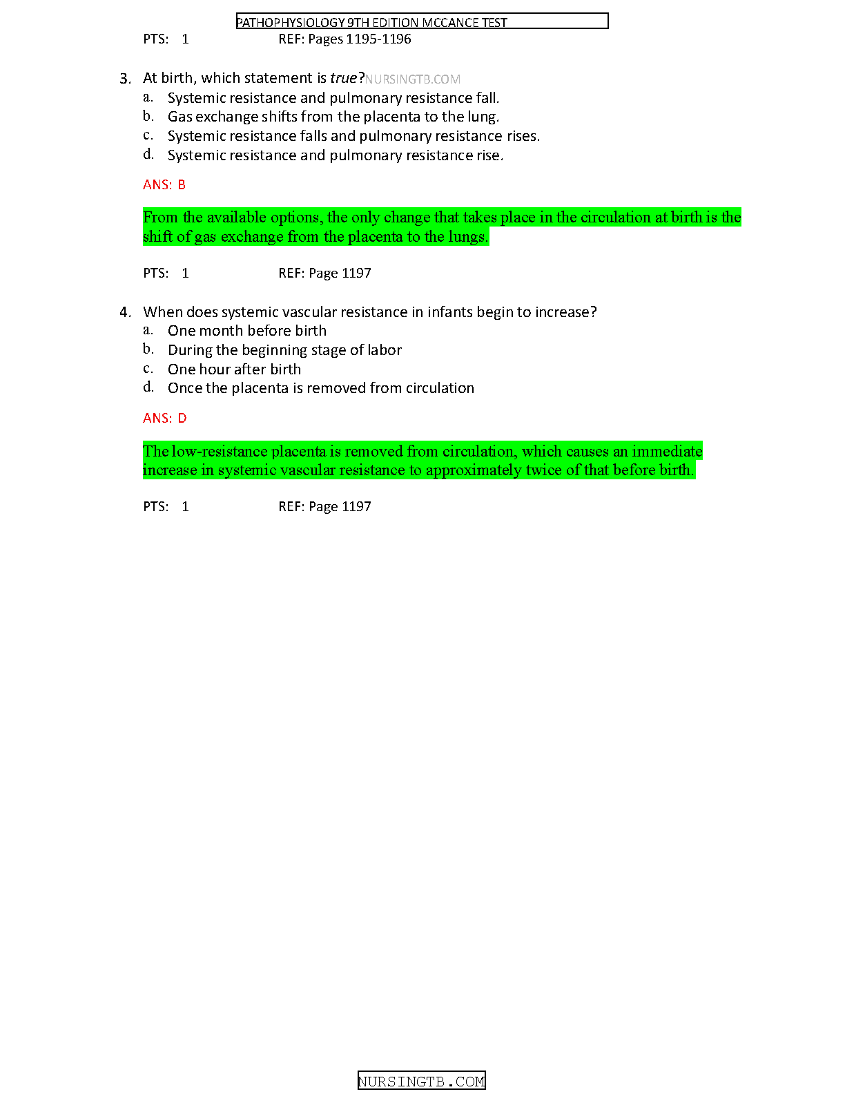 Test Bank for Pathophysiology: The Biologic Basis for Disease in Adults and Children, 9th Edition by Kathryn L. McCance & Sue E. Huether | Maryville University NURS 611 Exam 3
