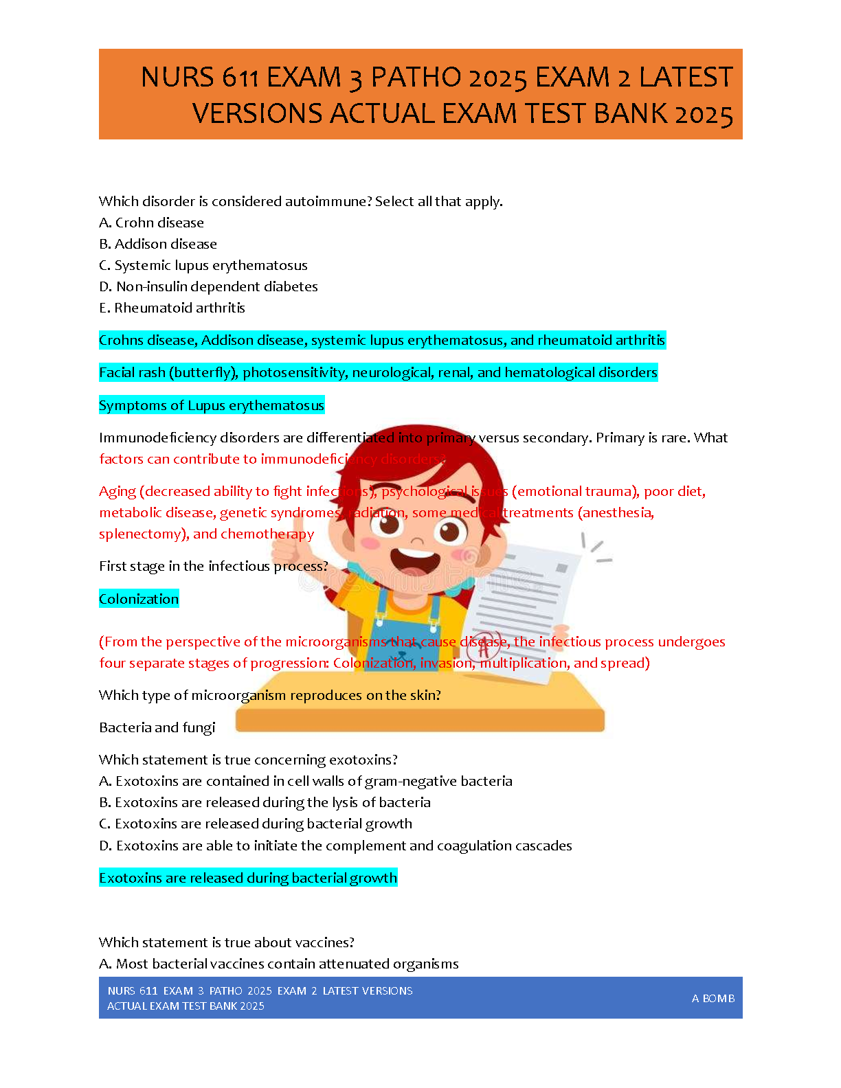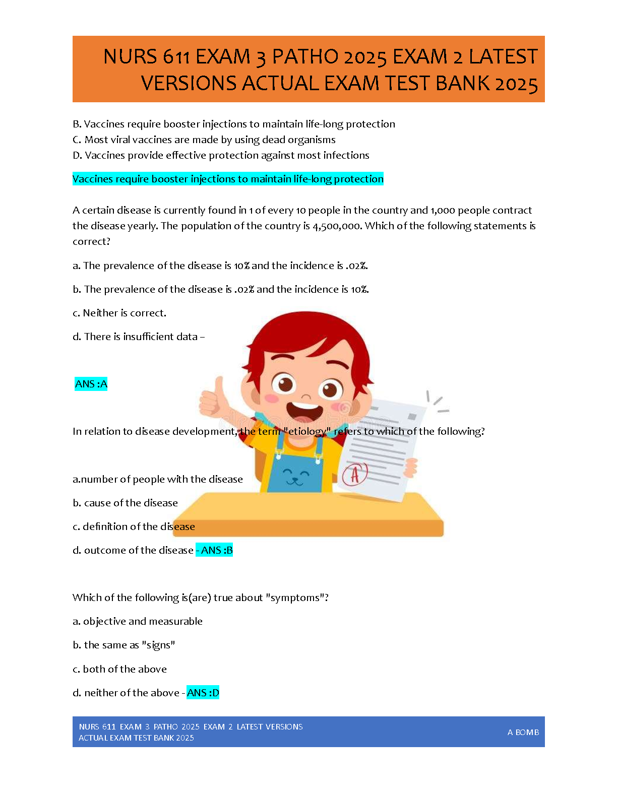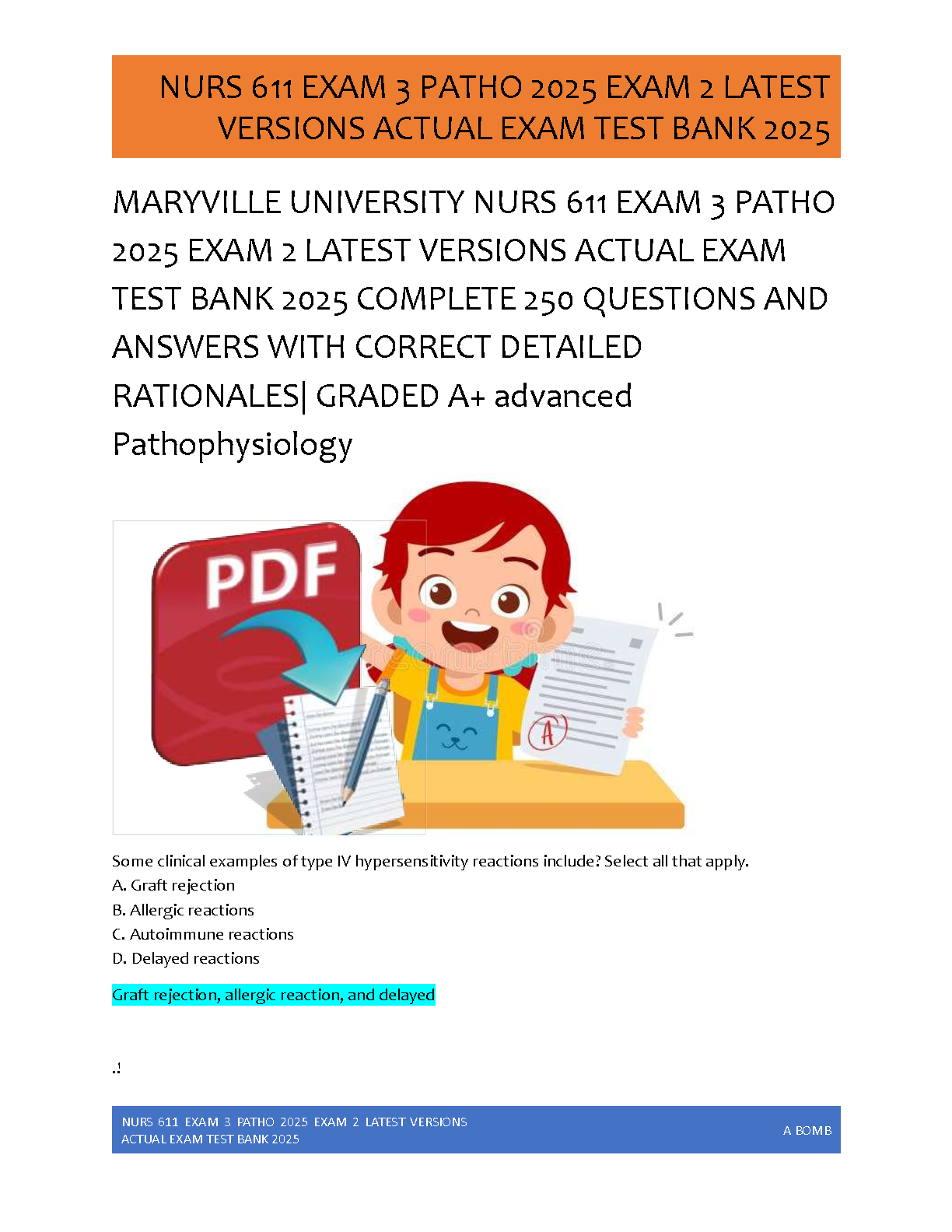 Ace your Advanced Pathophysiology exams with the ultimate study resource for Maryville University's NURS 611 course. This 2025 test bank is meticulously compiled with over 250 actual exam questions covering both Exam 2 and Exam 3. Each question is paired with a correct, detailed rationale to ensure a deep understanding of the material. Designed to help you achieve an A+ grade, this guide is your key to mastering complex topics and passing your exams with confidence on the first attempt. Get the latest, verified content and avoid resits!