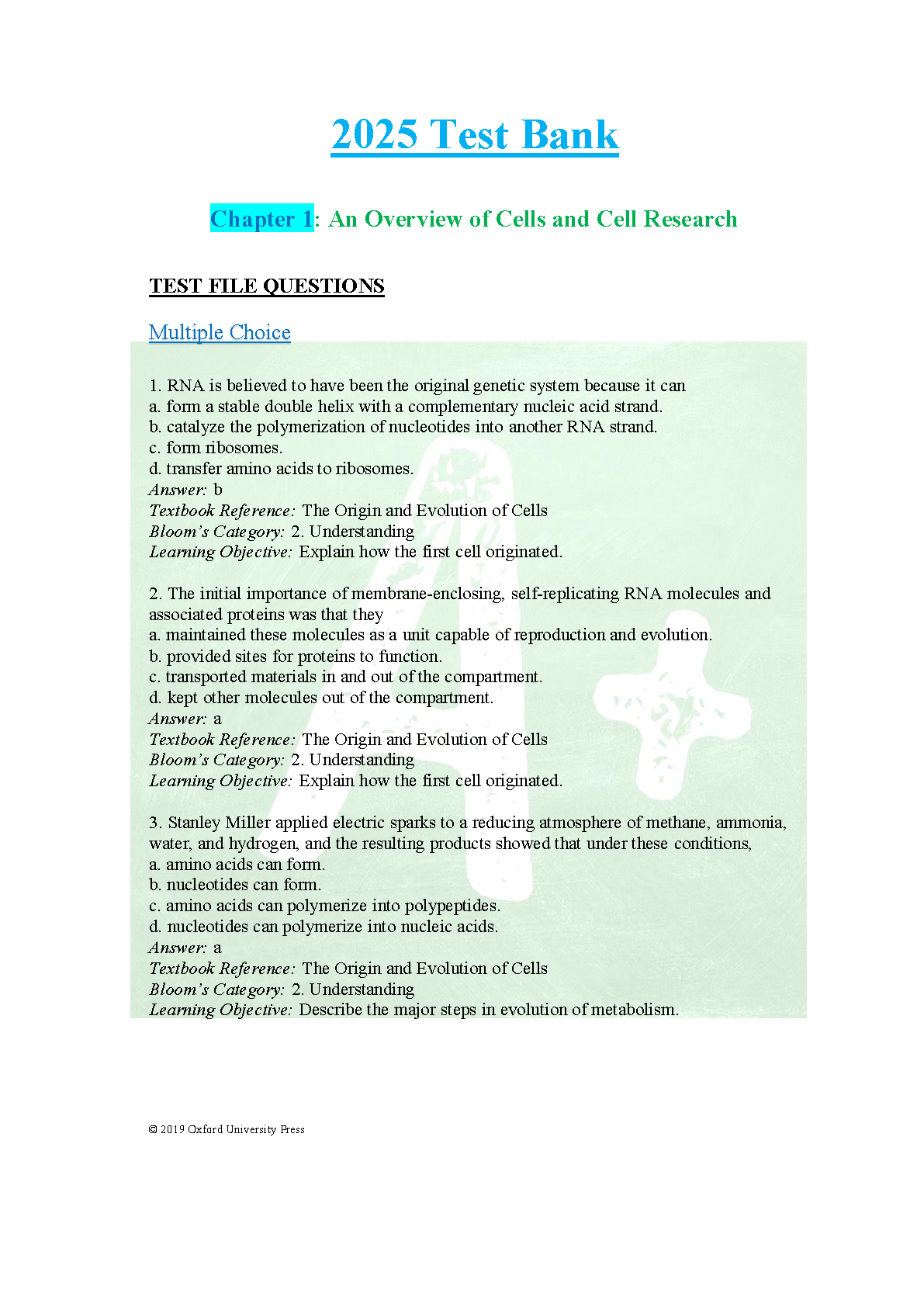 Unlock your full potential in cell biology with the official 2025 Test Bank for 'The Cell: A Molecular Approach,' 8th Edition, authored by Geoffrey M. Cooper and Robert E. Hausman. This comprehensive resource is packed with hundreds of practice questions and detailed answers covering every chapter, including 'An Overview of Cells and Cell Research.' It's the ultimate study companion designed to help you grasp complex concepts, ace your exams, and achieve academic excellence in your course. Get instant access and start preparing for success today!