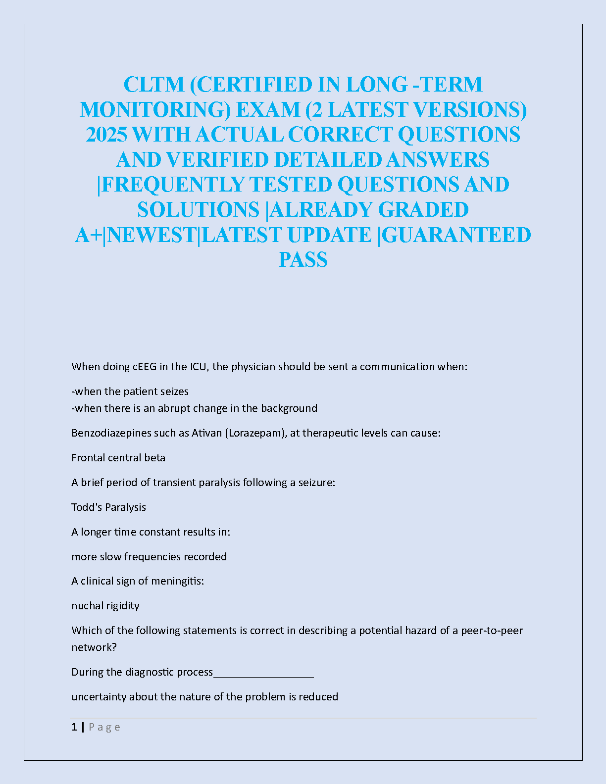 ABRET CLTM Exam Test Bank 2025/2026: Master Long-Term Monitoring with 2 Latest Versions of Questions and Verified Answers