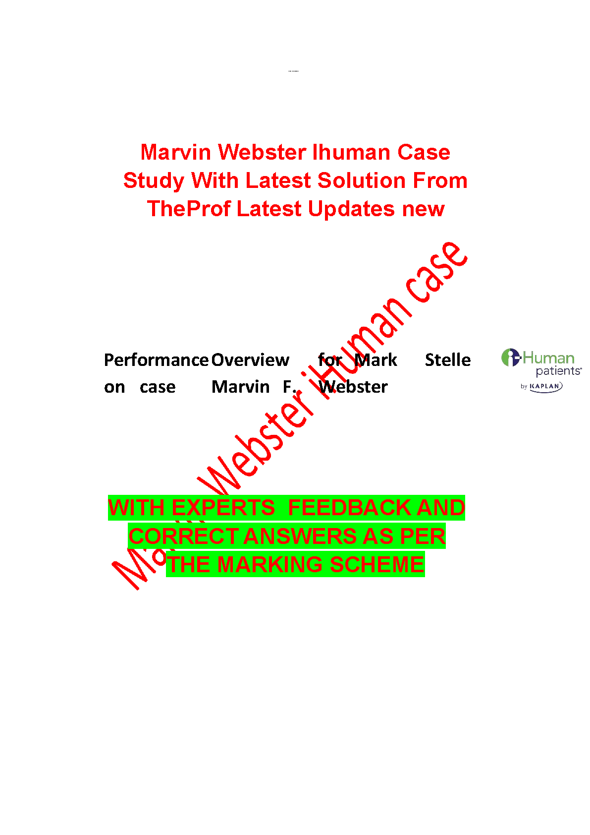 Unlock success in your nursing program with the latest 2025/2026 solution for the Marvin Webster iHuman Case Study. This comprehensive guide provides a detailed performance overview, complete with correct answers and expert feedback aligned with the official marking scheme. Navigate the simulation with confidence, understand the clinical reasoning behind each step, and secure a top grade. This resource is expertly crafted to help you pass your exams on the first attempt, saving you time and eliminating the need for resits.