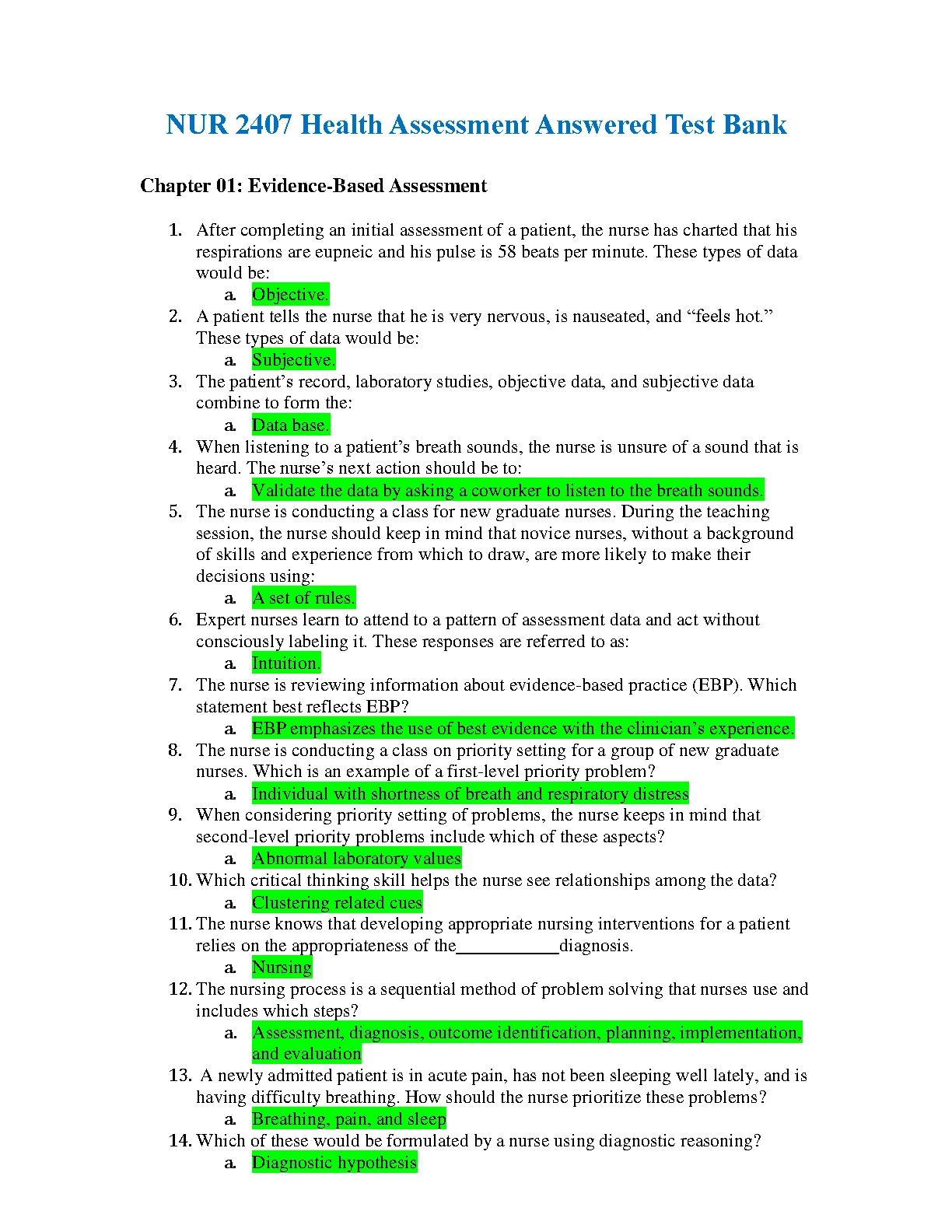 TEST BANK FOR NUR 2407 Health Assessment. QUESTIONS AND ANSWERS 2023