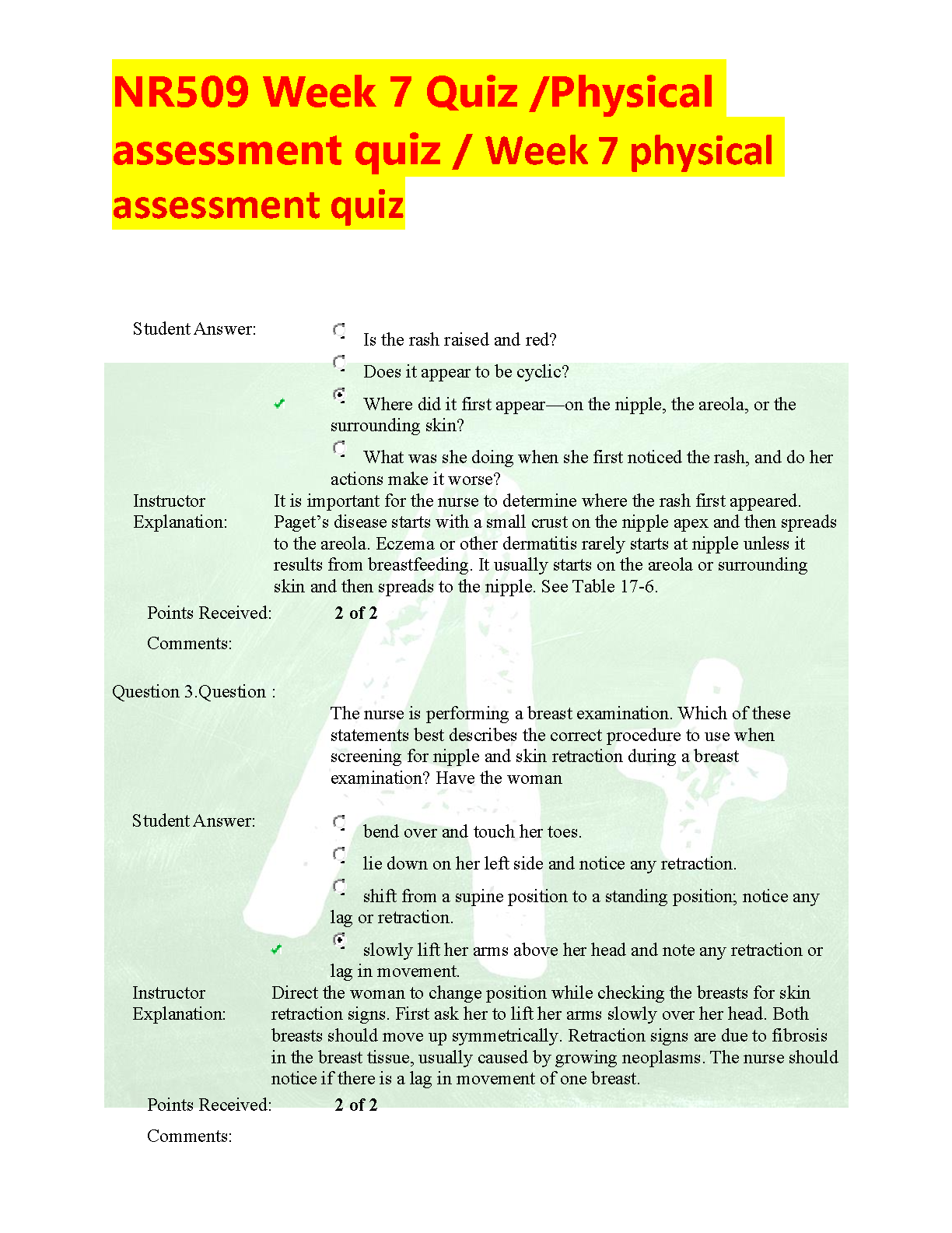 NR 509 Week 7 Physical Assessment Quiz Test Bank (Dains, Baumann, & Scheibel 4th Ed.) - Latest 2025/2026 Study Guide for Guaranteed Pass