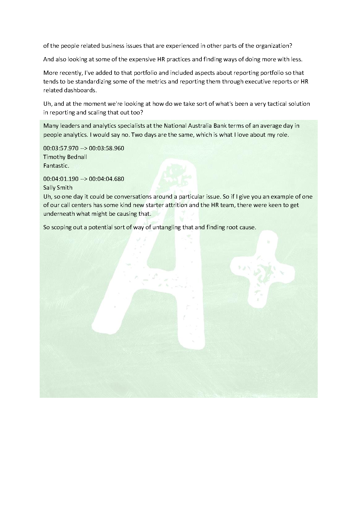 Unlock expert knowledge in People Analytics with this complete Week 12 transcript featuring an in-depth interview with Sally Smith, Head of People Analytics at National Australia Bank (NAB), conducted by Timothy Bednall. This essential resource, fully updated for the 2025/2026 academic year, is designed to help you master complex concepts and pass your exams on the first attempt. Delve into real-world applications of data science in HR, understand the challenges of people-related projects, and gain invaluable insights from a leading industry professional. This is the ultimate study aid to avoid resits and excel in your course.