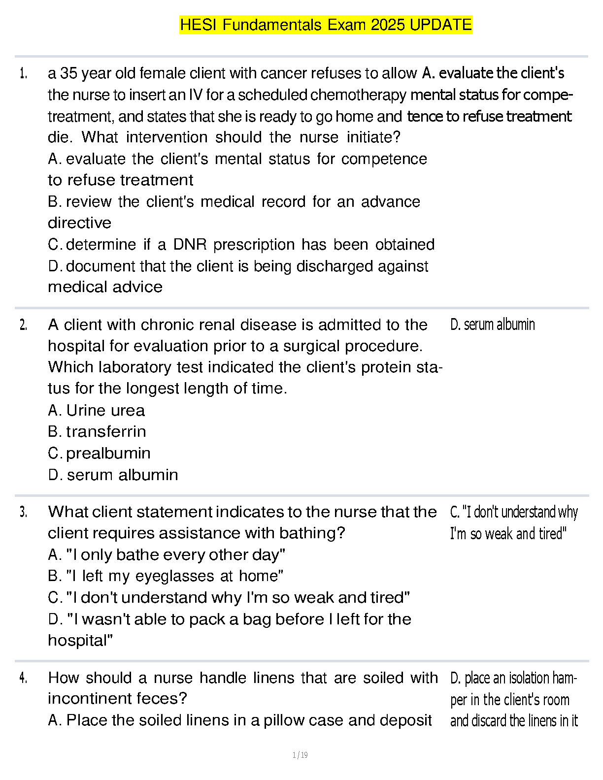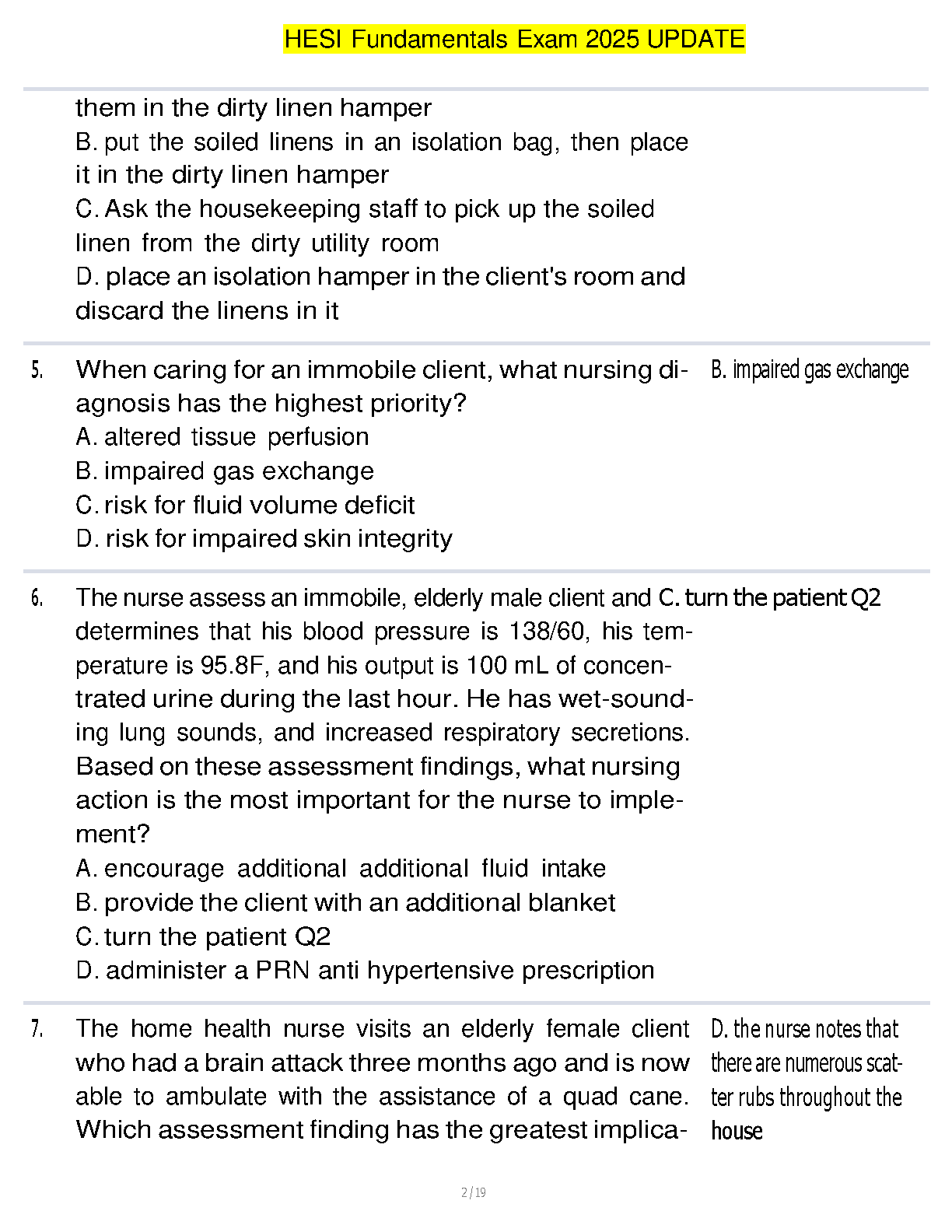 Master the HESI Fundamentals exam with our comprehensive and fully updated 2025/2026 study guide. This resource is meticulously crafted with a wide range of practice questions and verified answers that cover all critical areas of fundamental nursing. Designed for students aiming to excel, this guide will help you build confidence, master core concepts, and pass your exam on the first attempt, eliminating the need for costly and stressful resits. Your essential tool for acing the HESI is here.