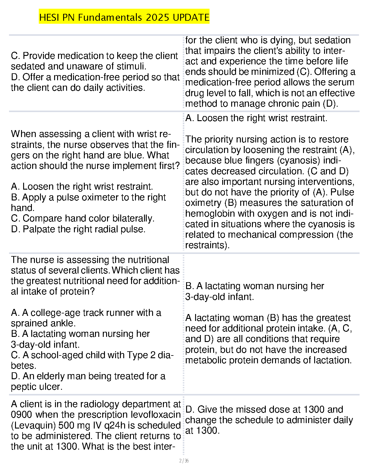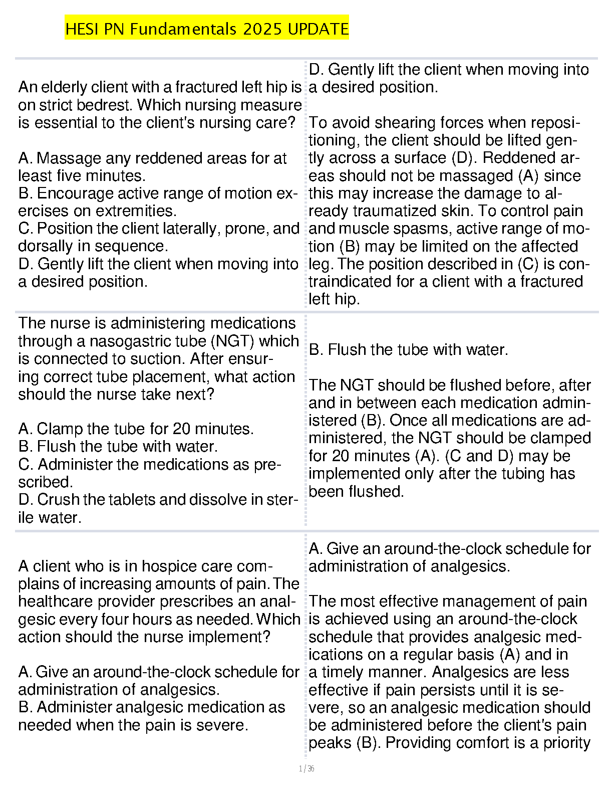 HESI PN Fundamentals 2025 Test Bank - Verified Questions & Rationales by Elsevier
