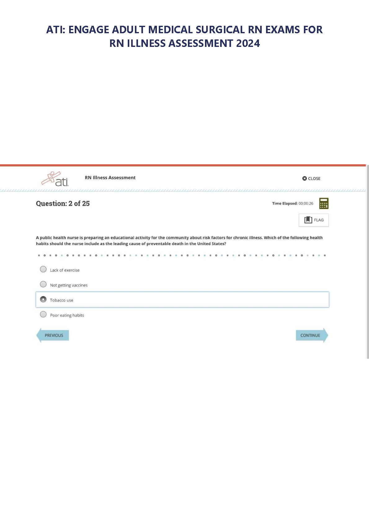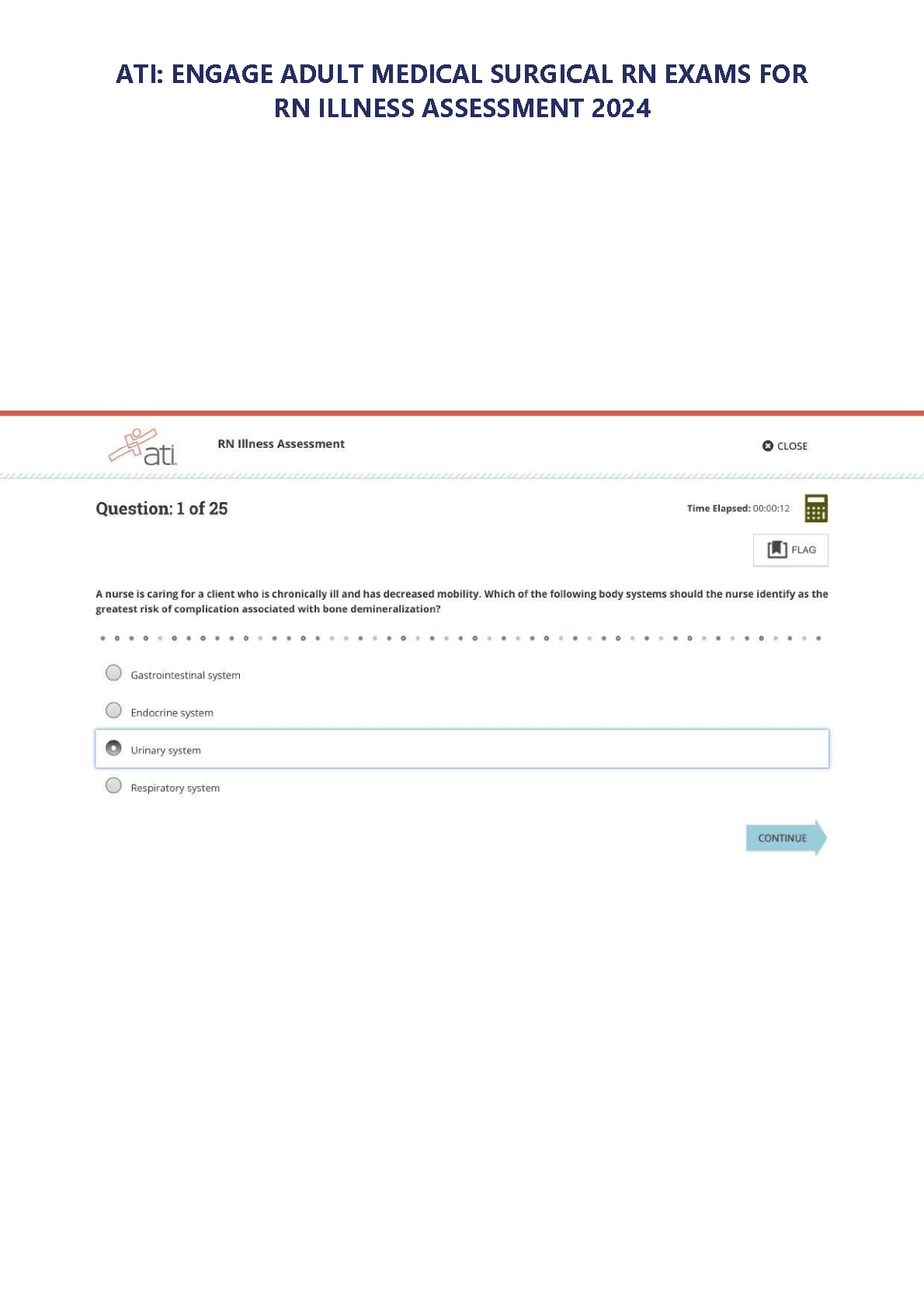ATI Engage Adult Medical Surgical RN Illness Assessment 2024 Test Bank (Questions and Answers)