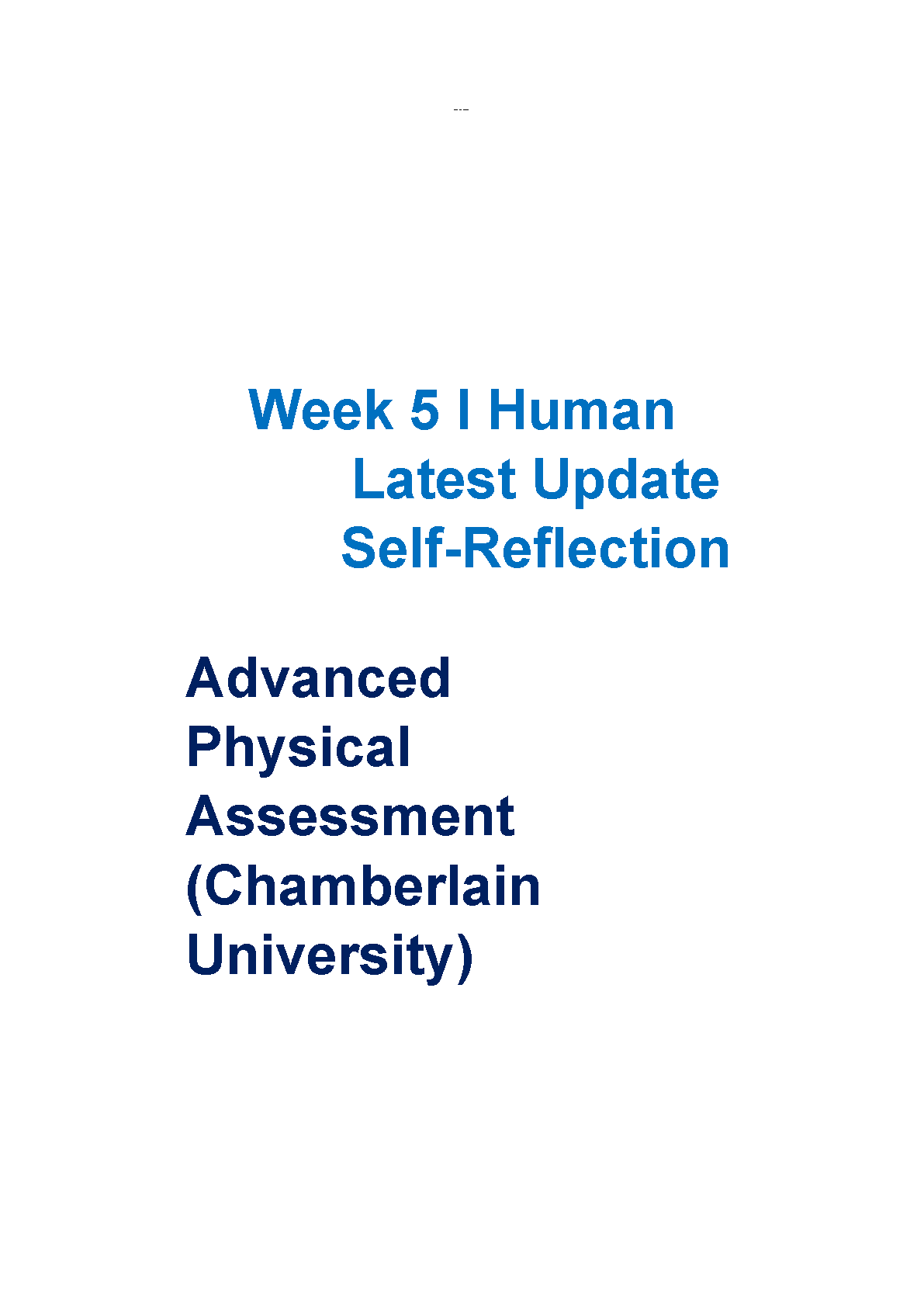 Get the latest and most comprehensive guide for your Week 5 iHuman Self-Reflection in Advanced Physical Assessment at Chamberlain University. This 2025/2026 updated resource is designed to help you master the key concepts, complete your self-reflection with confidence, and excel in your exams. Avoid resits and ensure you pass on your first attempt with this essential study aid.