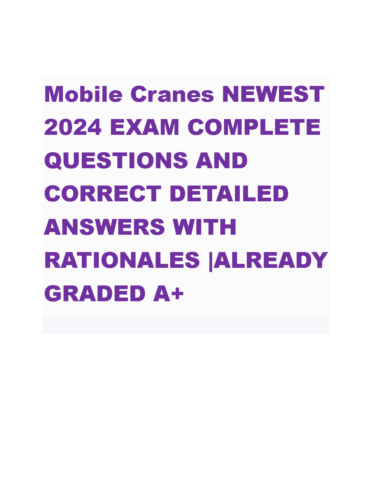 Mobile Cranes Certification Exam Test Bank 2024 - A+ Graded Questions, Detailed Answers, and Rationales for NCCCO Prep
