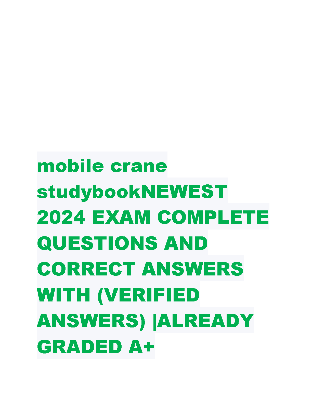 Master your Mobile Crane Operator certification exam with our premier 2024 test bank. This guide is loaded with complete exam questions and expertly verified answers, designed to help you achieve an A+ grade. Prepare effectively, pass on your first attempt, and avoid the stress of resits. Your path to certification success starts here!