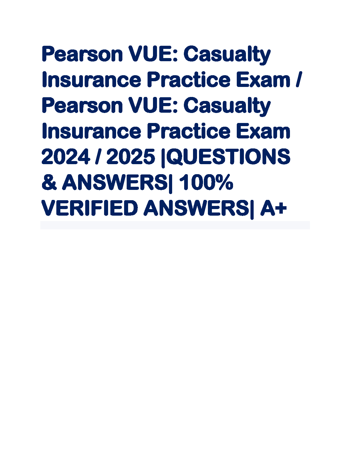 Pearson VUE Casualty Insurance Exam 2025/2026: A+ Grade Guaranteed Test Bank with 100% Verified Questions & Answers to Pass on Your First Try