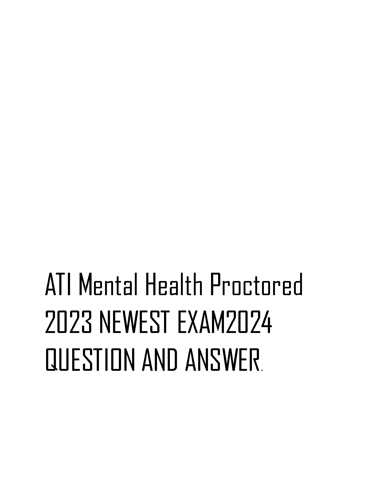 Ace your ATI RN Mental Health Proctored Exam with our latest 2024 test bank. This comprehensive resource is packed with the newest questions and detailed, verified answers, reflecting the most current exam format. Designed to help you master key concepts in psychiatric nursing and boost your confidence, this guide is your ultimate tool to pass on the first attempt and avoid resits. Get immediate access to a curated collection of exam-style questions that will prepare you for success in your nursing program.