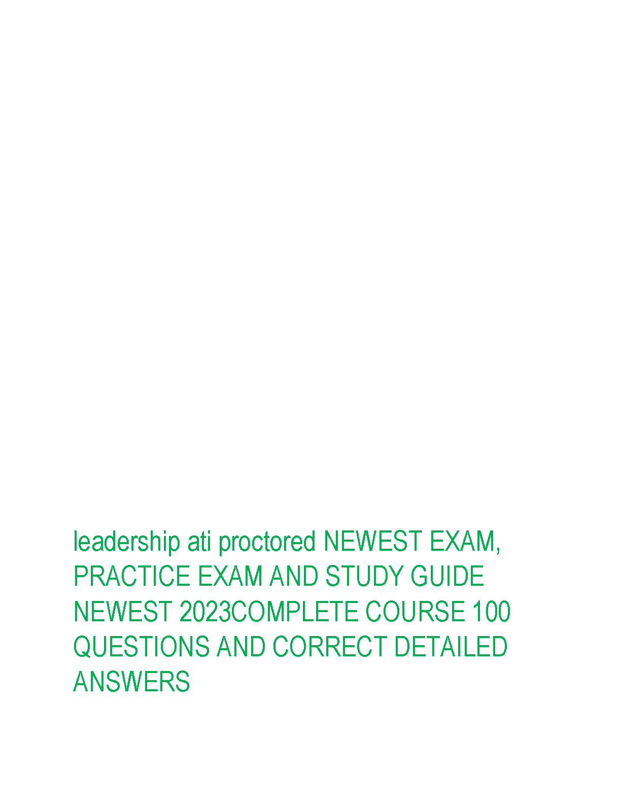 Master the ATI Leadership Proctored Exam with our comprehensive 2023 study guide and test bank. This essential resource features 100 meticulously crafted practice questions, each paired with correct, detailed answers and rationales. Designed to cover the complete course curriculum, this guide helps you grasp critical leadership concepts, reinforce your knowledge, and build confidence for exam day. Prepare effectively, understand the 'why' behind each answer, and walk into your proctored exam ready to succeed. Get the score you need to advance in your nursing program!