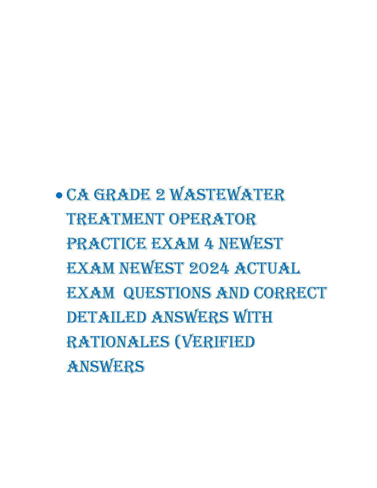 Master the CA Grade 2 Wastewater Treatment Operator Exam 2024: A Complete Test Bank with Actual Questions, Verified Answers, and In-Depth Rationales