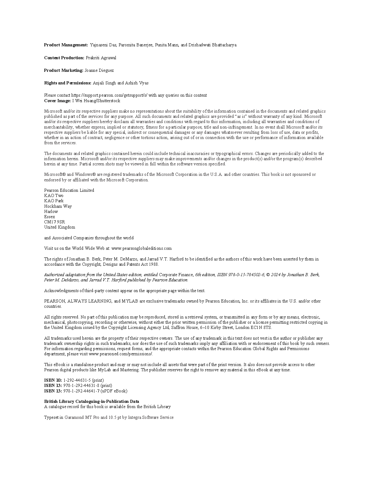 Test Bank for Corporate Finance, 6th Global Edition by Jonathan Berk & Peter DeMarzo