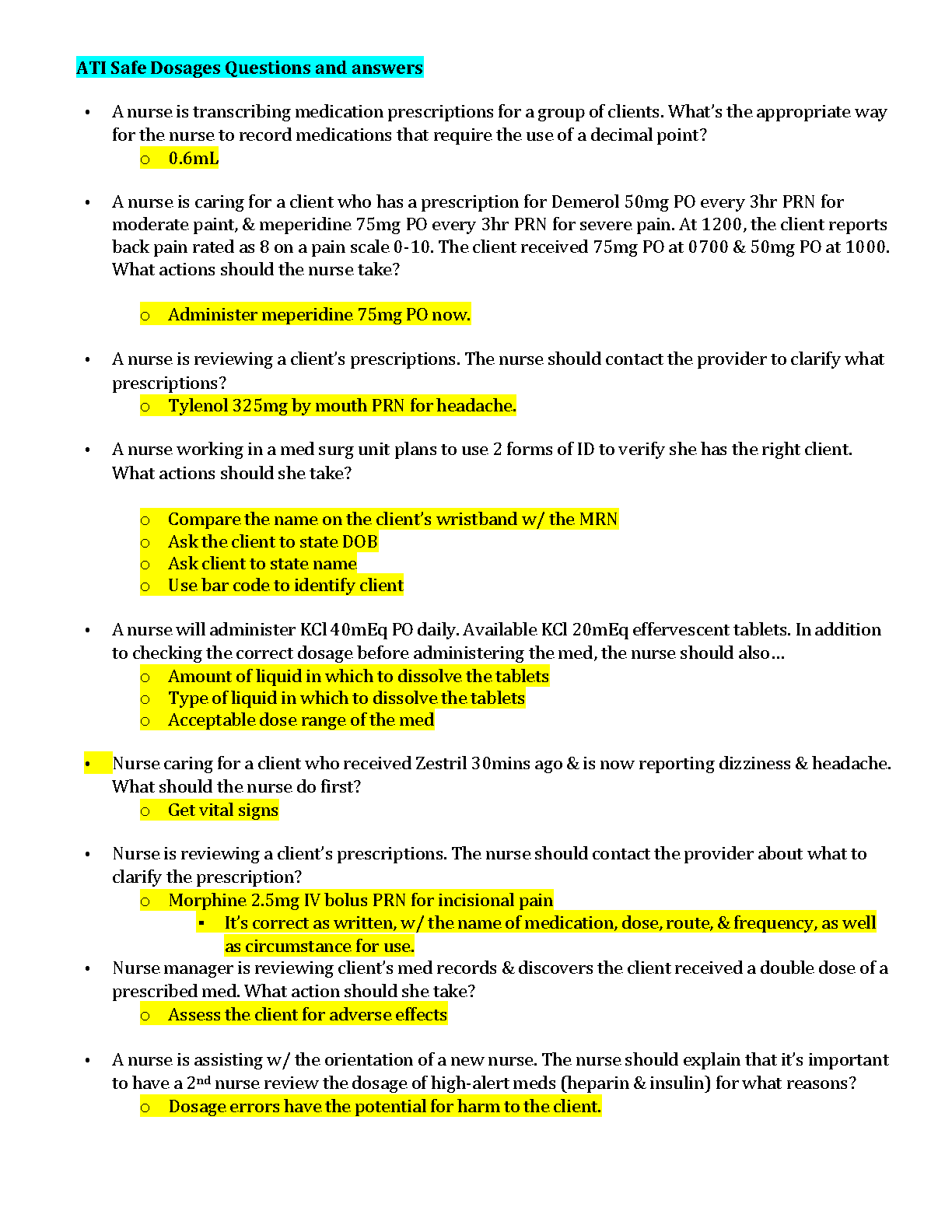 Master ATI Safe Dosages 2025/2026: Verified Questions & Answers to Ace Your Exams and Avoid Resits