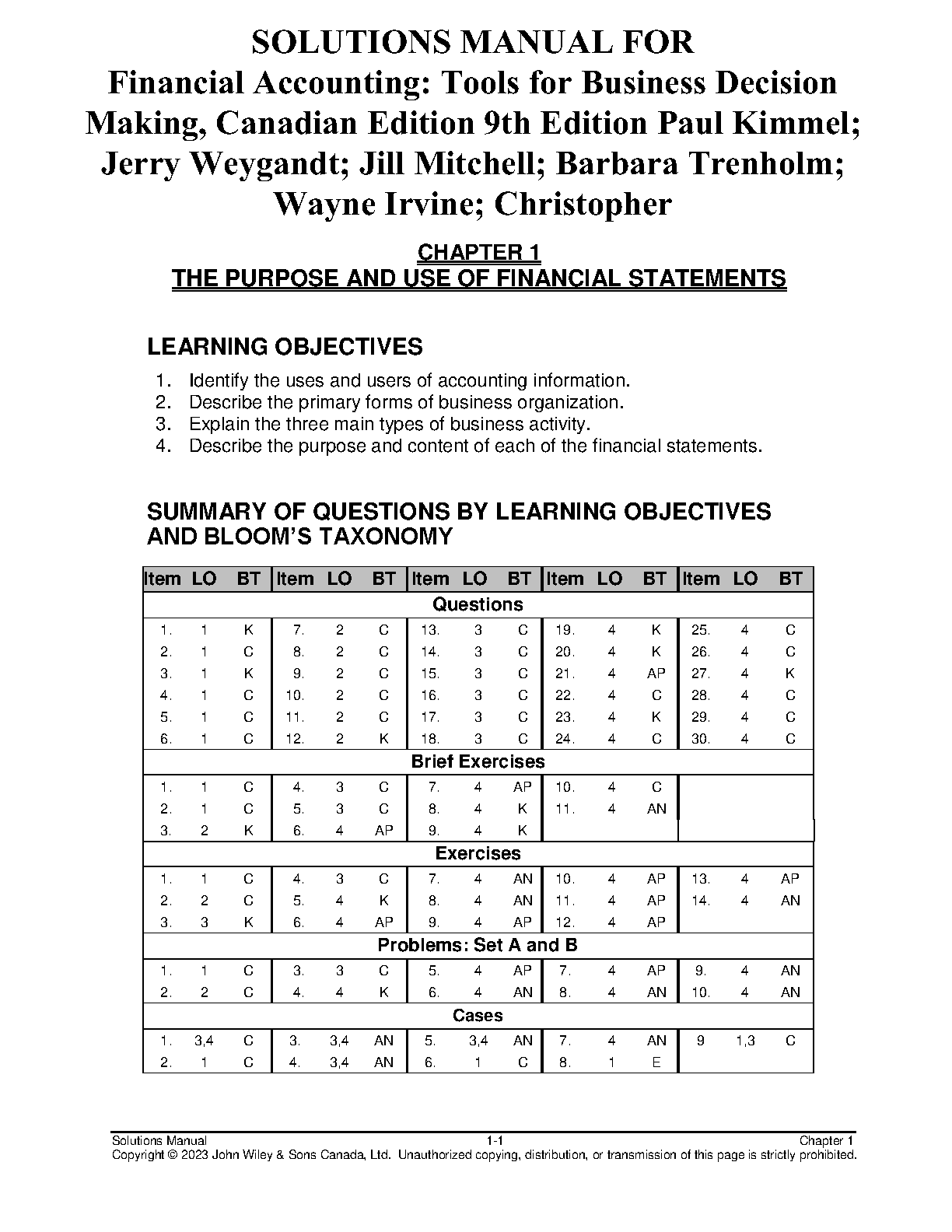 Solutions Manual for Financial Accounting: Tools for Business Decision-Making, Ninth Canadian Edition by Paul D. Kimmel, Jerry J. Weygandt, Donald E. Kieso, Barbara Trenholm, V. A. Irvine, Christopher D. Burnley