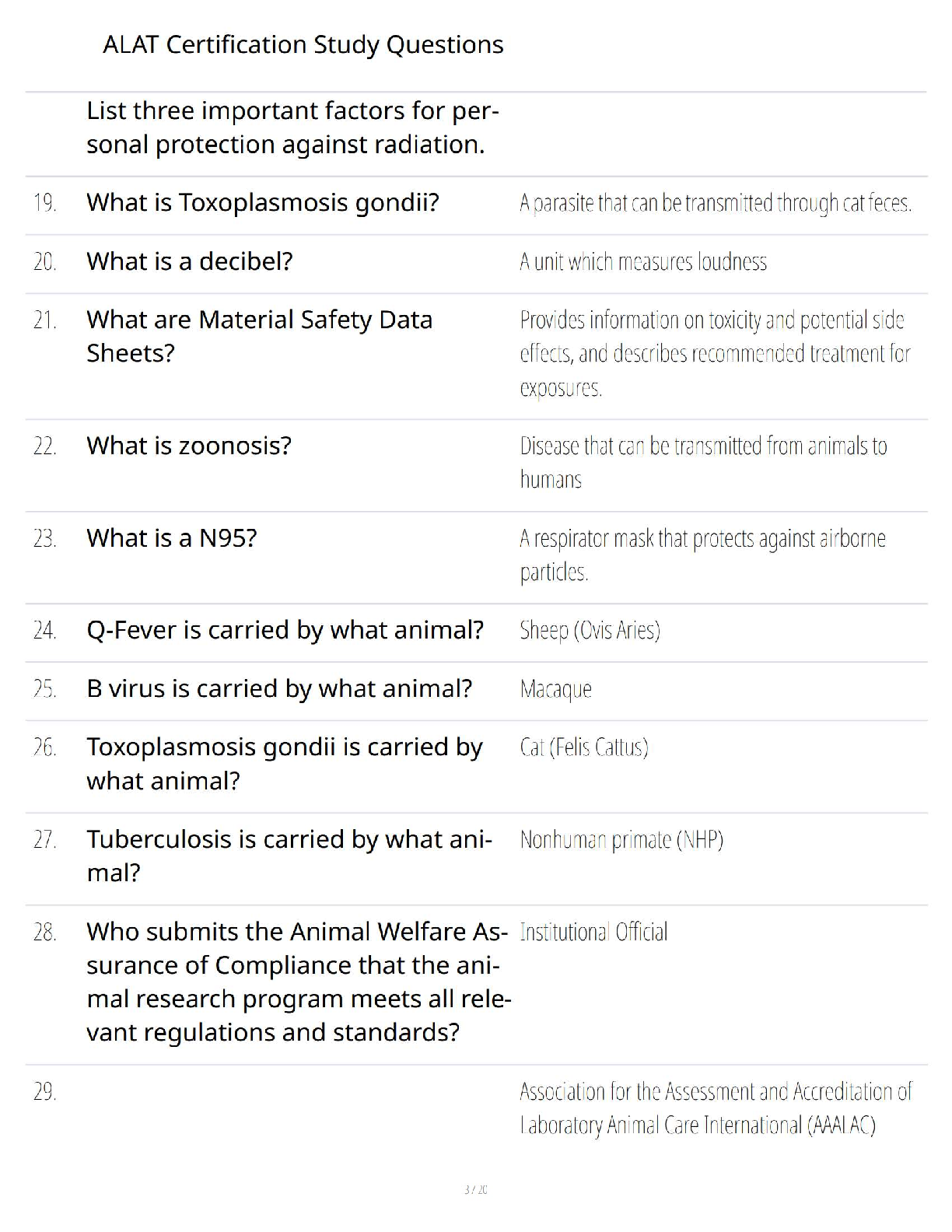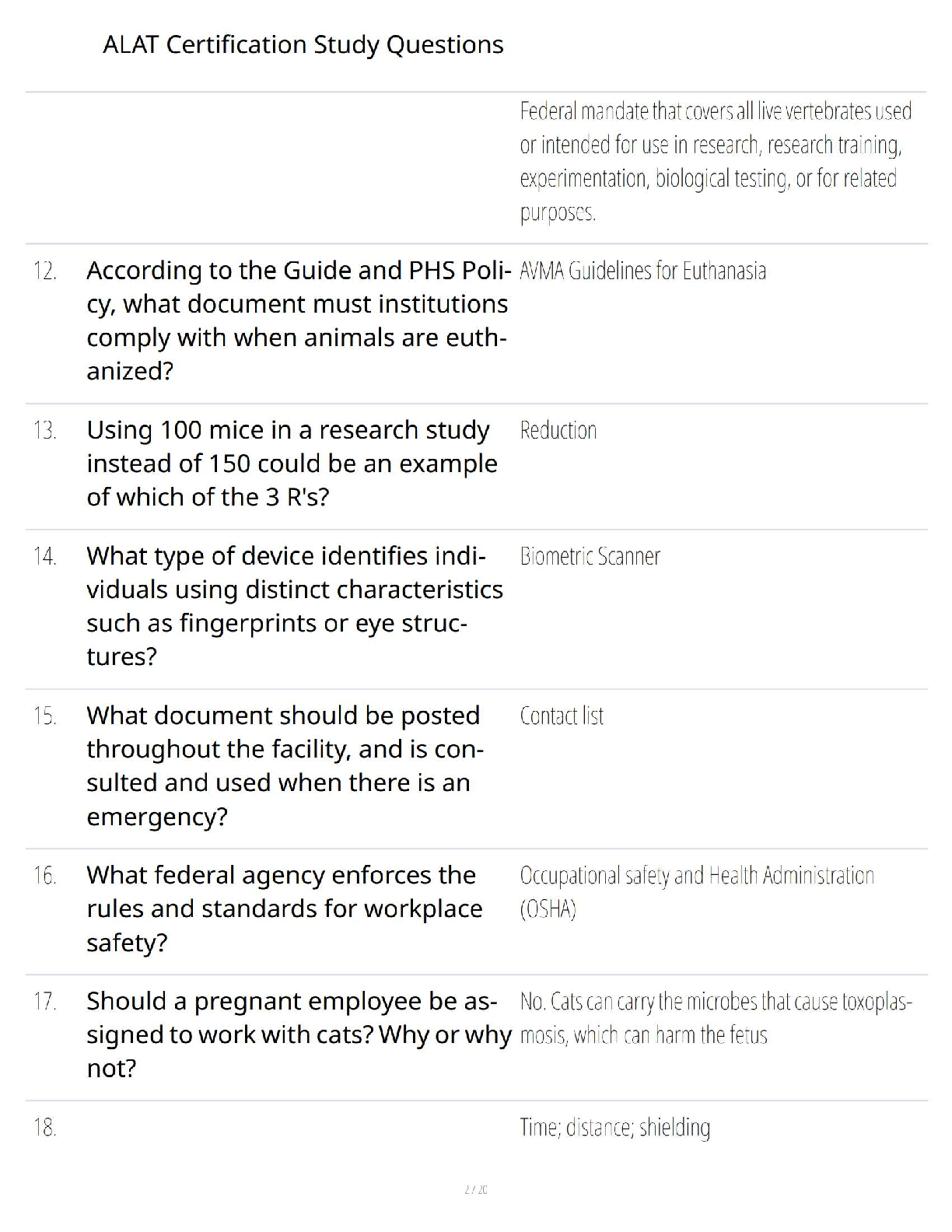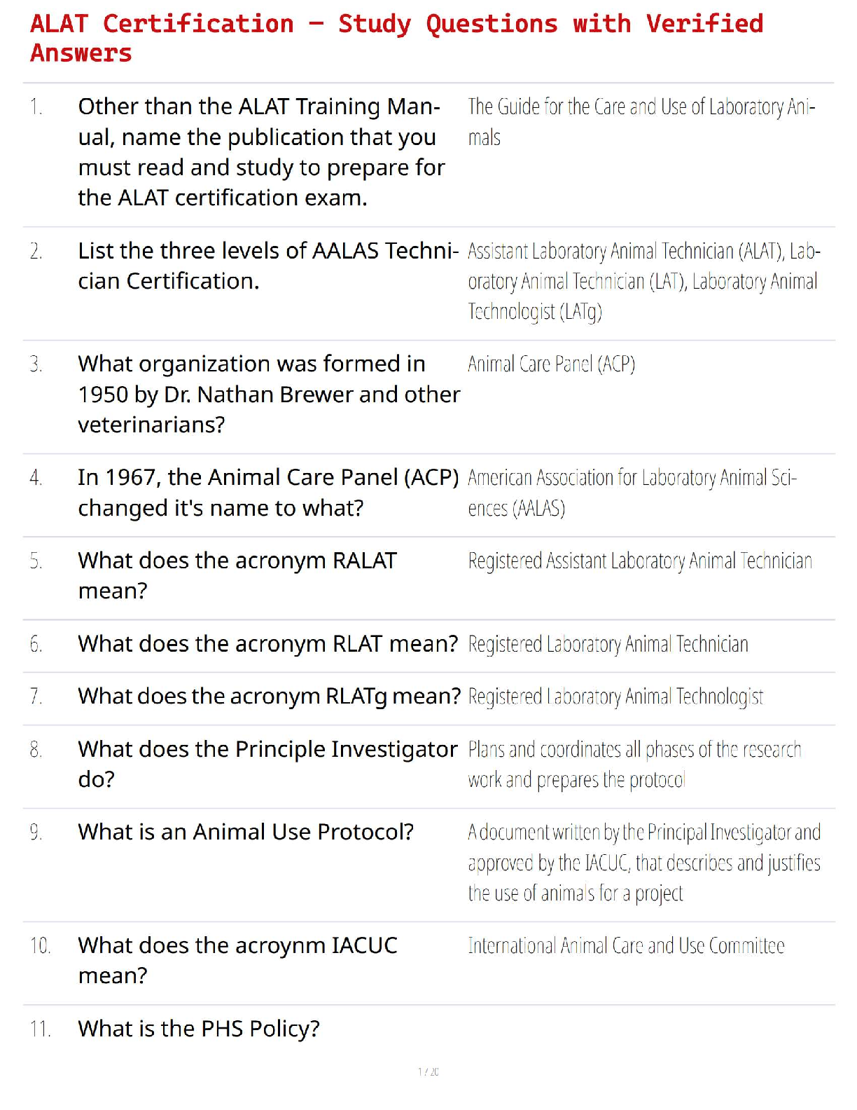Ace your Assistant Laboratory Animal Technician (ALAT) certification exam on your first attempt with this essential test bank for the 2025/2026 academic year. This comprehensive resource features a curated collection of study questions complete with verified, 100% correct answers. Directly aligned with the core curriculum, including key concepts from 'The Guide for the Care and Use of Laboratory Animals' and the official AALAS training materials, this guide covers everything from AALAS history and technician levels to IACUC protocols. Prepare confidently, master the material, and avoid costly resits by using these targeted Q&As to ensure you are fully prepared for success.
