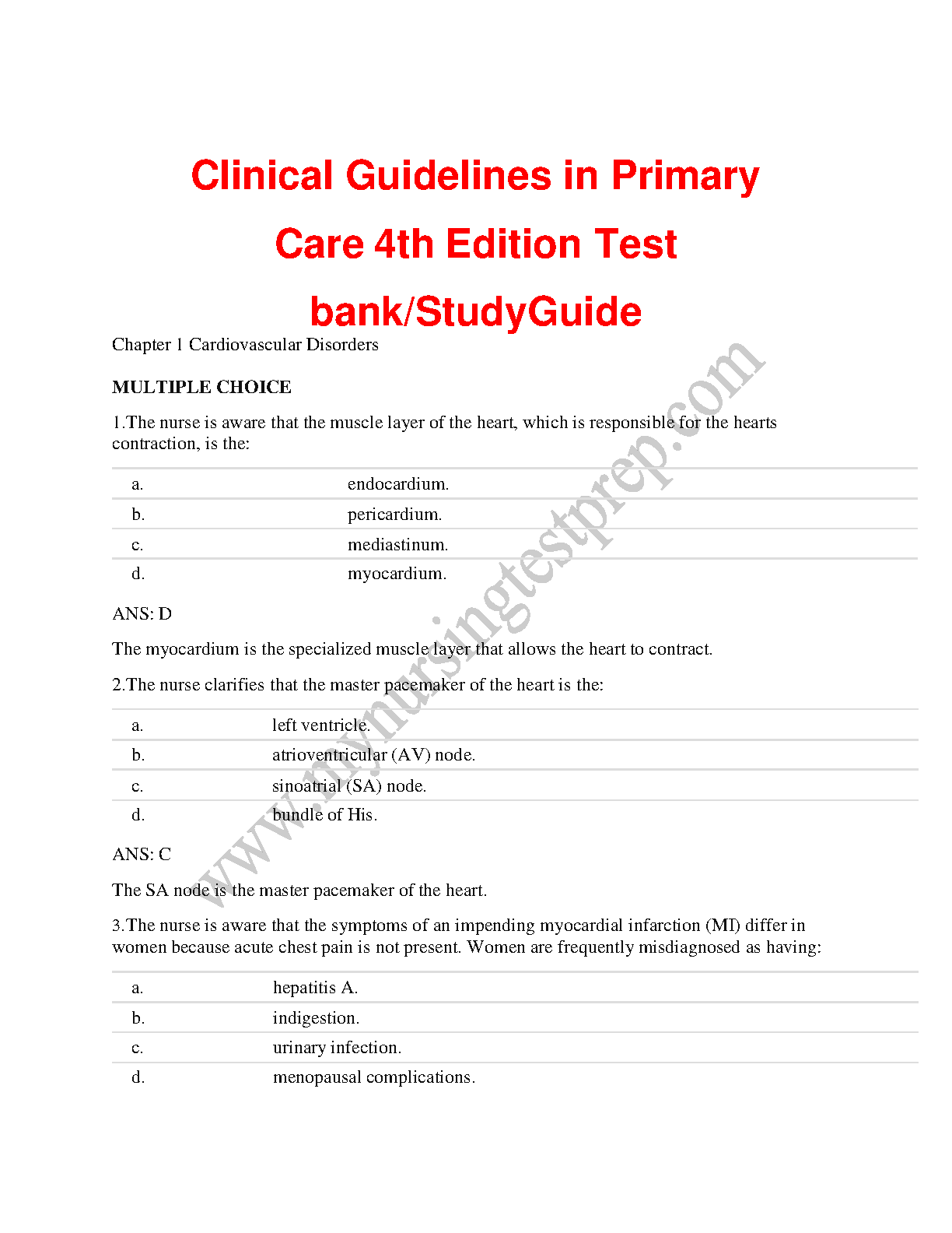 Test Bank for Clinical Guidelines in Primary Care, 4th Edition by Constance R. Uphold and Mary Virginia Graham