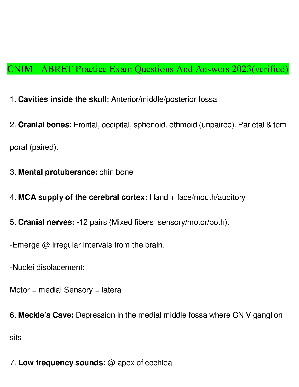CNIM ABRET Exam 2025/2026: Ultimate Test Bank with Verified Practice Questions and Answers for First-Attempt Success