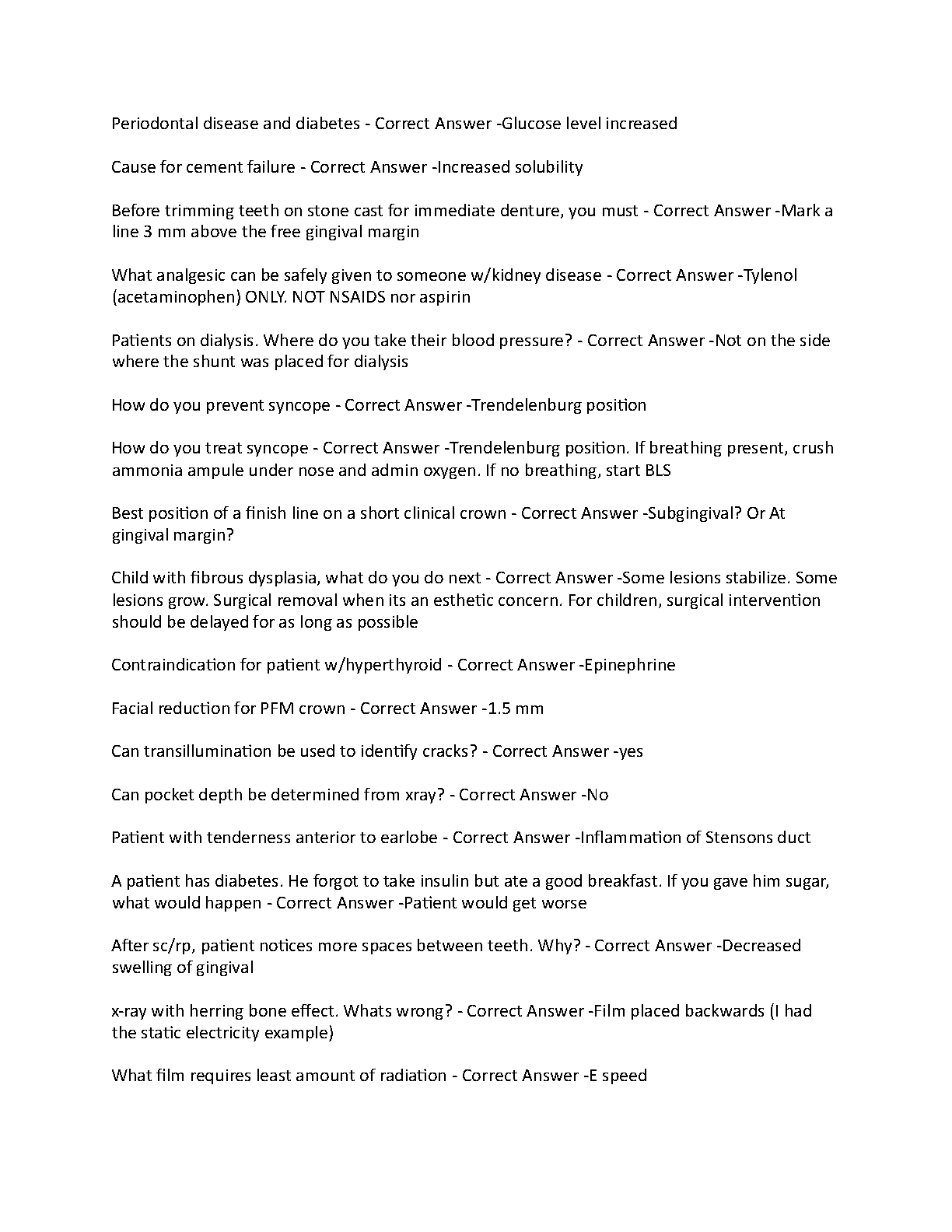 Ace your dental board exams with our comprehensive test bank for the ADEX, CDCA, and DSE. This study guide features a curated collection of remembered questions from past exams, complete with verified and detailed solutions. Covering critical topics from pharmacology, patient management, clinical procedures, and diagnosis, this resource is designed to help you study efficiently and master the material. Get the confidence you need to pass on your first attempt with these targeted Q&As.