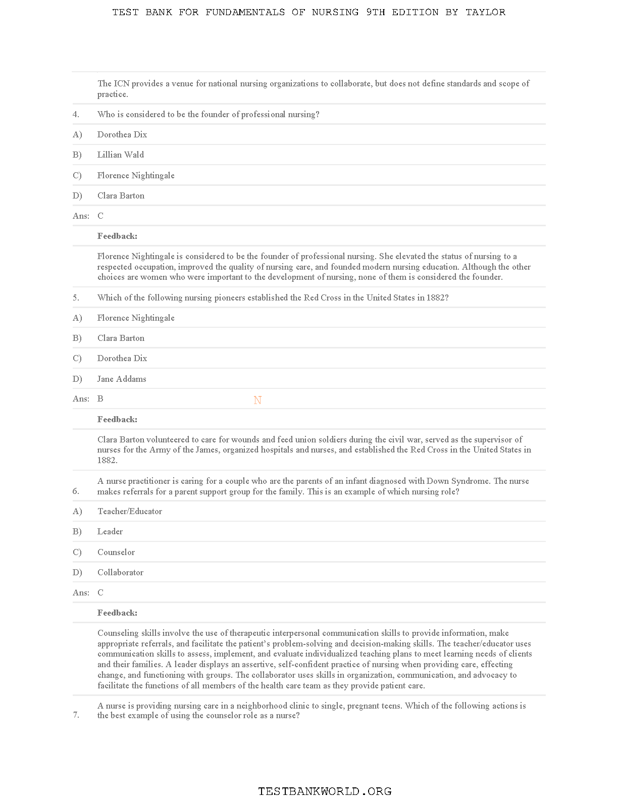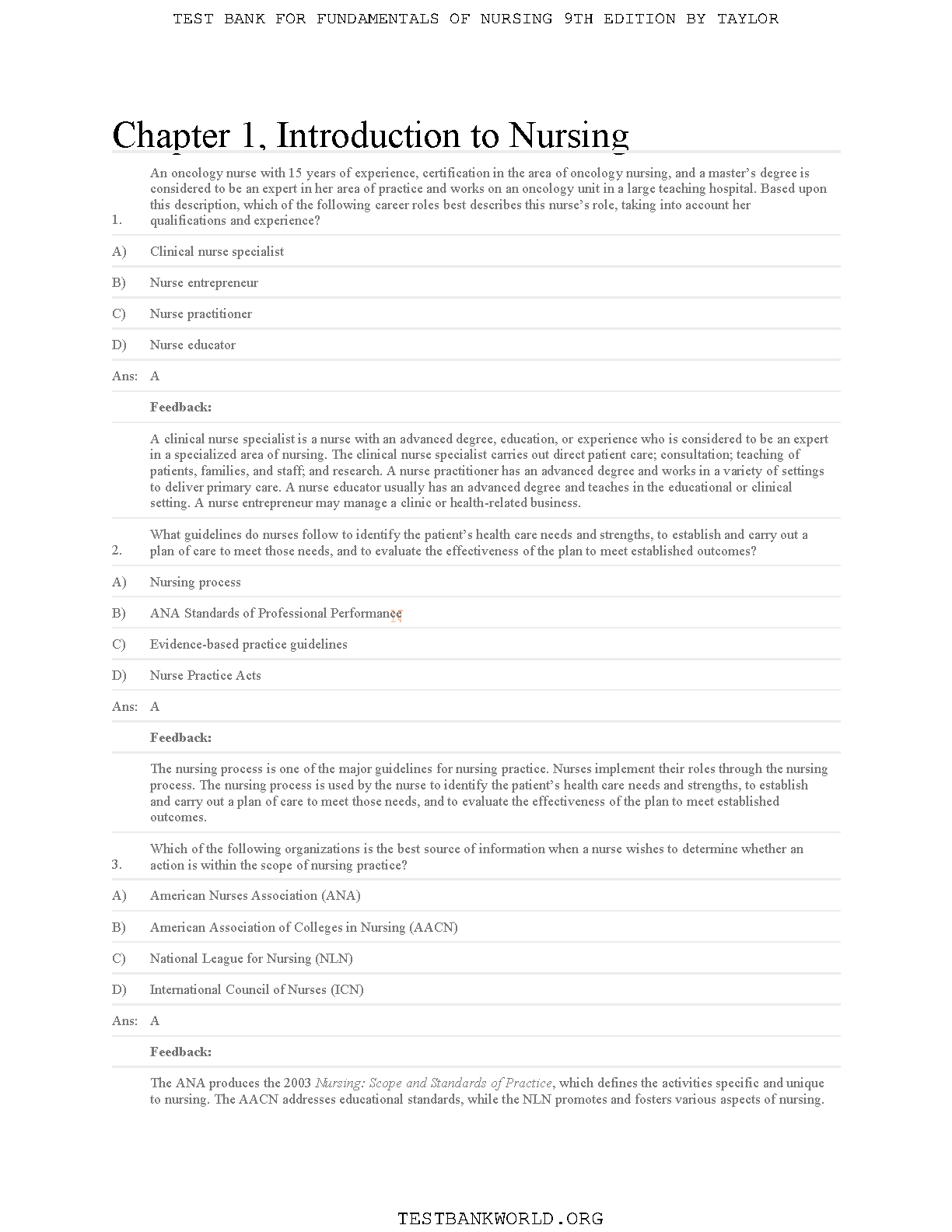 Test Bank for Fundamentals of Nursing, 9th Edition by Carol R. Taylor, Pamela B. Lynn, and Jennifer L. Bartlett