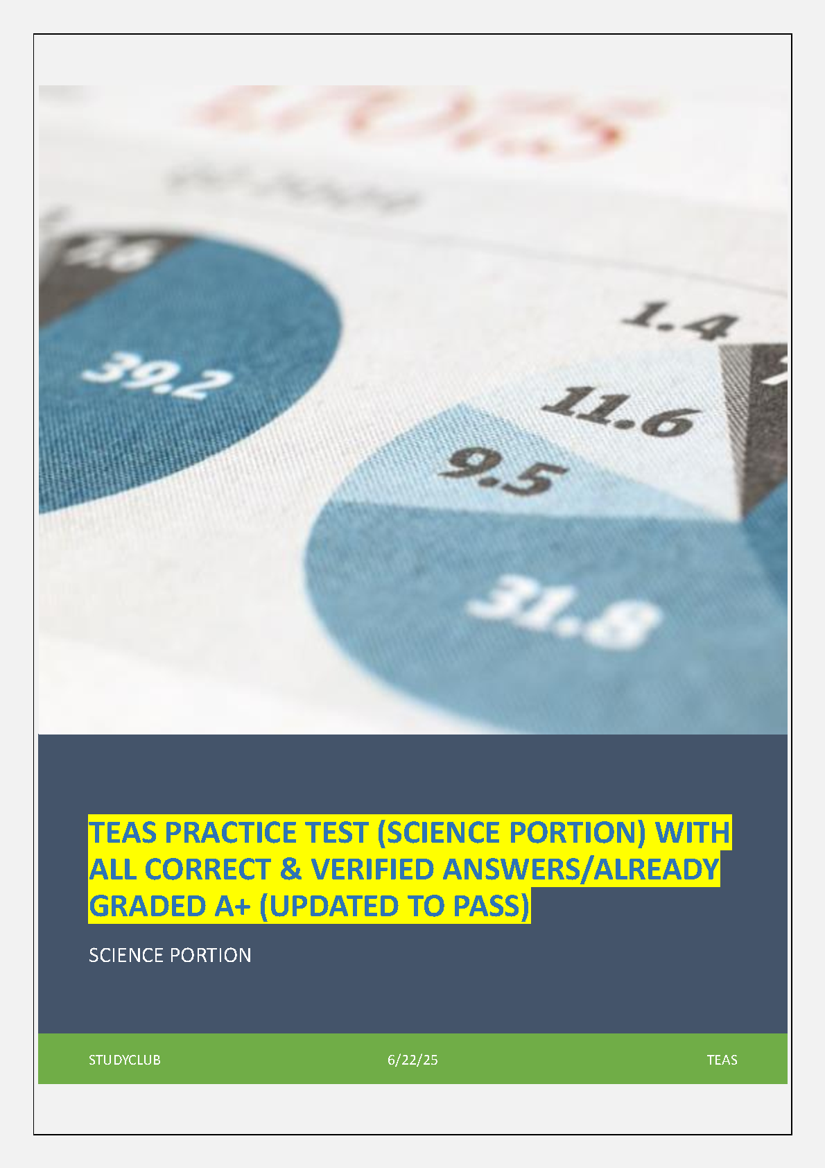Unlock success on the Science portion of your nursing entrance exam with our newly updated 2025/2026 ATI TEAS 7 Practice Test Bank. This essential study tool features a complete set of A+ graded questions, each paired with a correct and verified answer. Meticulously prepared to reflect the real exam, this guide will help you master challenging scientific concepts, build confidence, and achieve a top score. Prepare effectively to pass on your very first attempt and avoid the hassle of resits. Download now and take the first step towards your nursing career!
