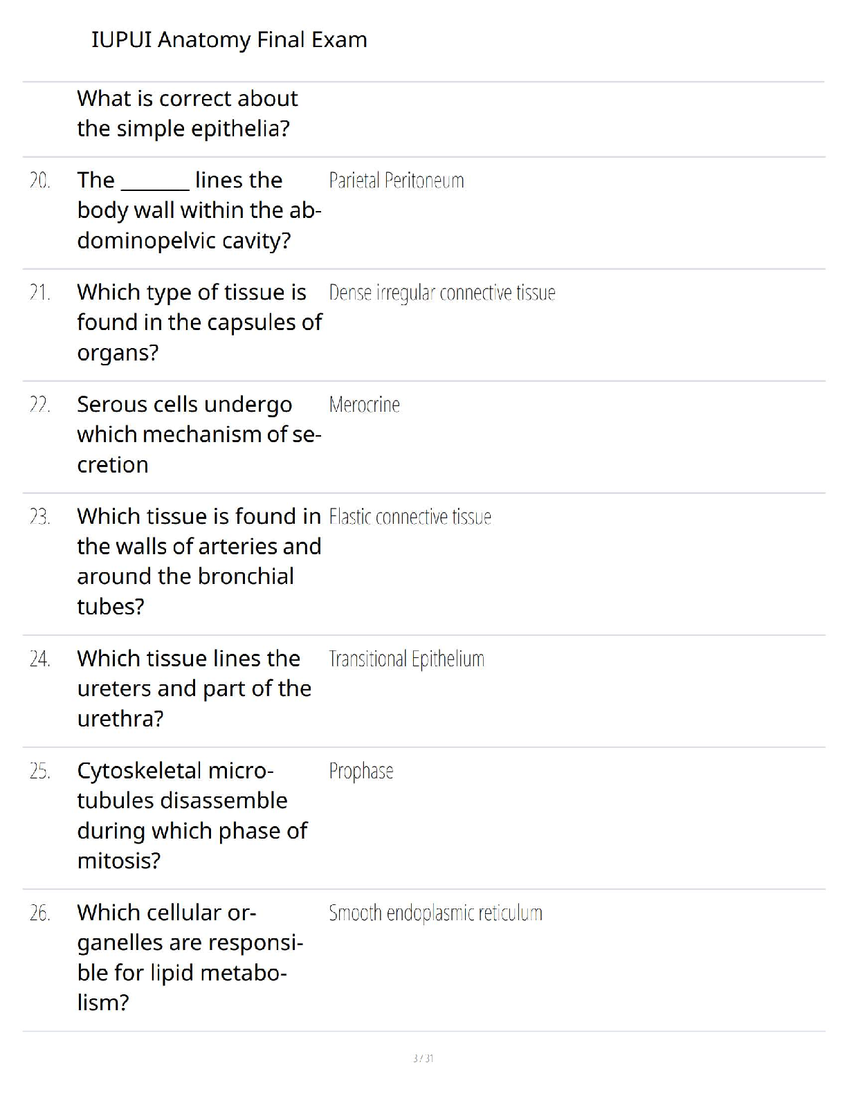 IUPUI Anatomy Final Exam Test Bank (Q&A) | Latest 2025/2026 Study Guide with Verified Answers