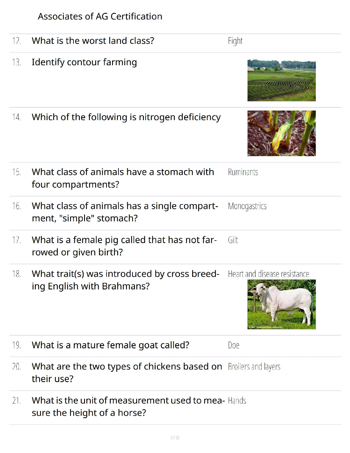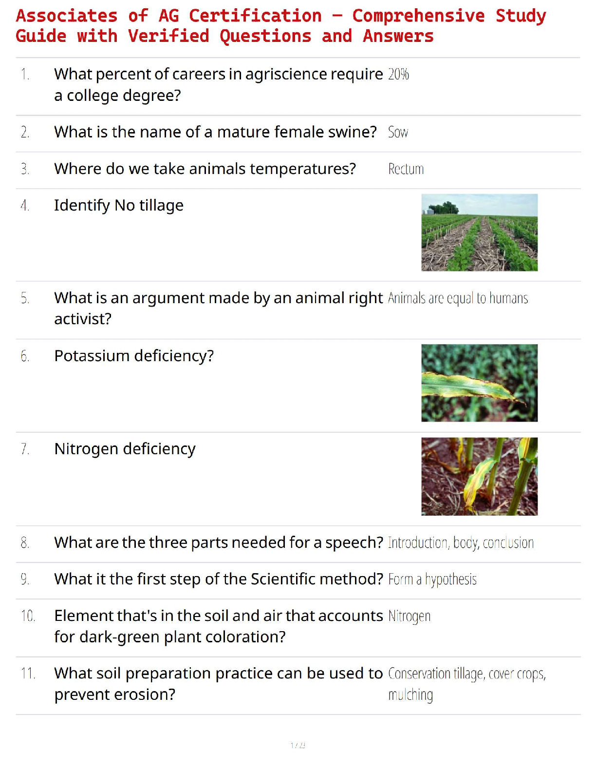 Unlock your potential and ace the Associates of AG Certification exam on your very first try with our expertly compiled 2025/2026 Test Bank. This comprehensive resource is packed with a wide array of verified questions and 100% correct answers, covering all essential topics. Dive deep into key areas such as agriscience principles, animal science, soil management techniques like no-tillage, plant nutrient deficiencies, and more. Designed for ultimate exam success, this study guide provides the exact knowledge you need to pass with confidence and avoid costly resits. Get instant access and start your journey to becoming a certified AG Associate today!