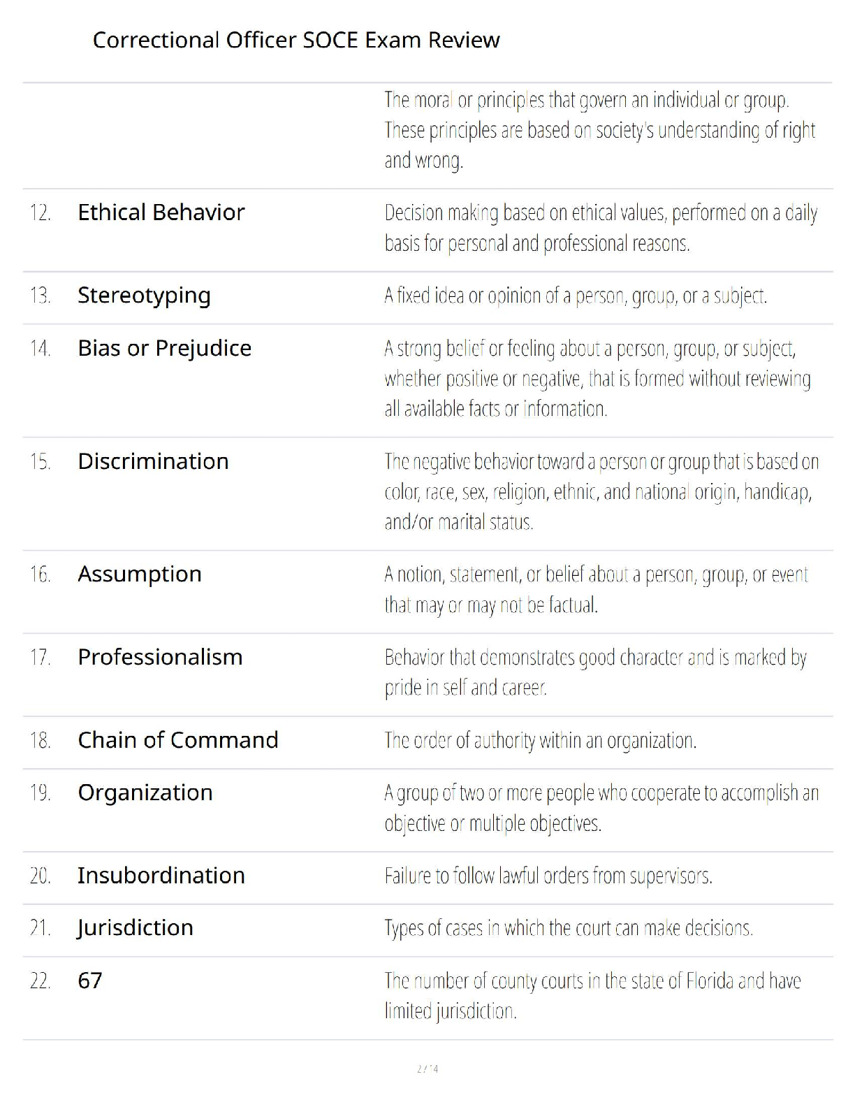 Get ready to ace the Florida State Officer Certification Examination (SOCE) for Correctional Officers with this all-inclusive study guide for the 2025/2026 academic year. This comprehensive resource is packed with verified questions and detailed answers, covering all the essential topics you need to know. From the Florida Administrative Code (FAC) and Model Jail Standards (FMJS) to critical statutes and ethical principles, this guide is meticulously designed to help you master the material, build confidence, and pass your certification exam on the very first attempt, eliminating the need for costly and time-consuming resits.