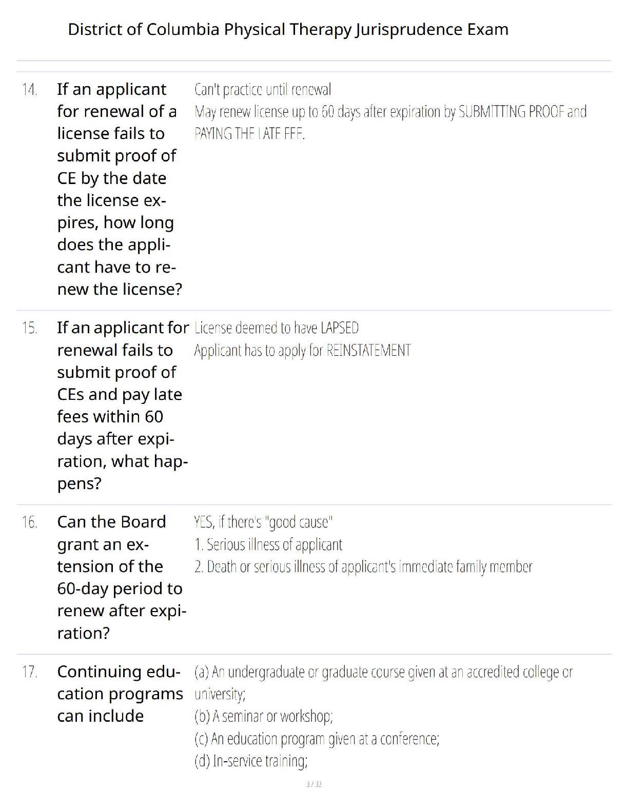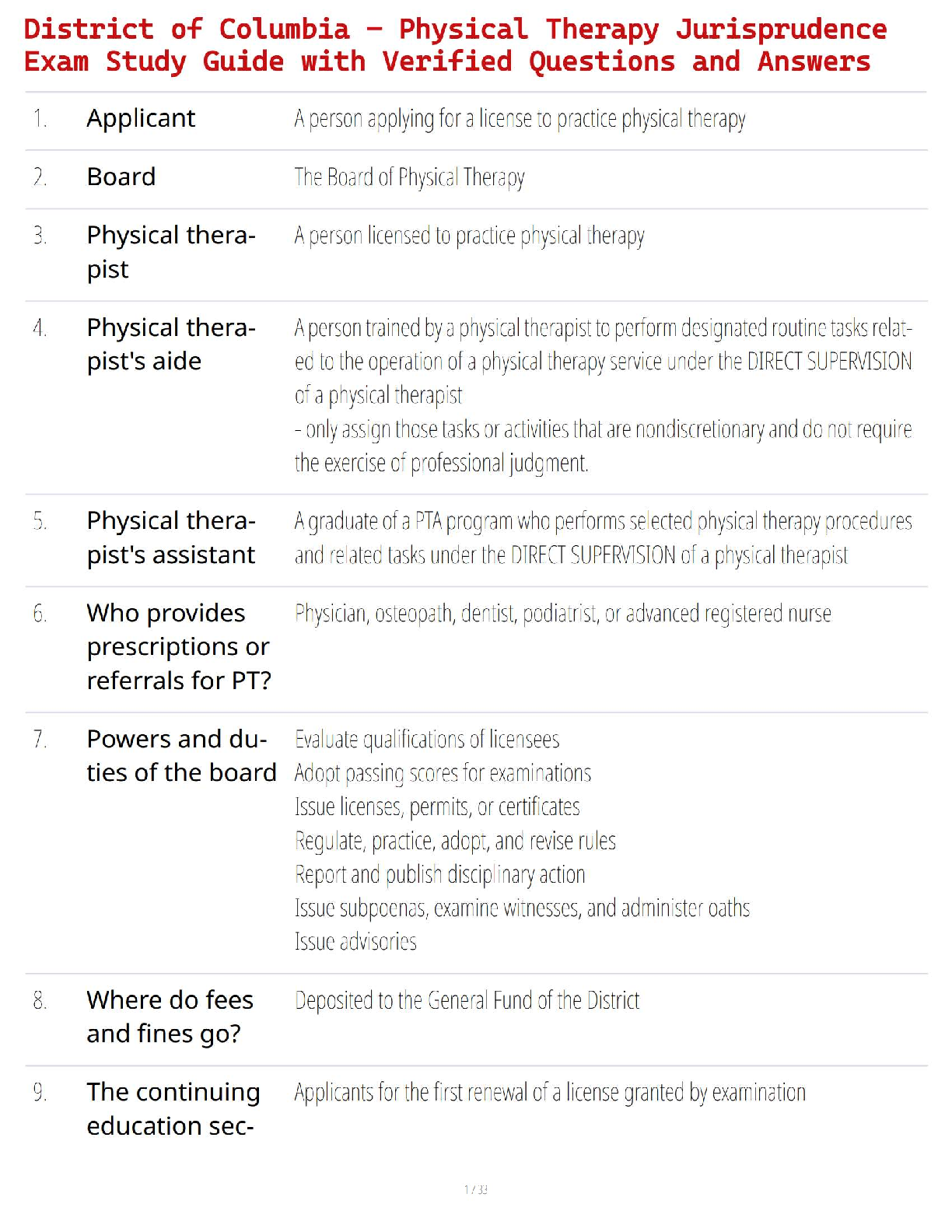 District of Columbia (DC) Physical Therapy Jurisprudence Exam Test Bank with Verified Questions and Answers