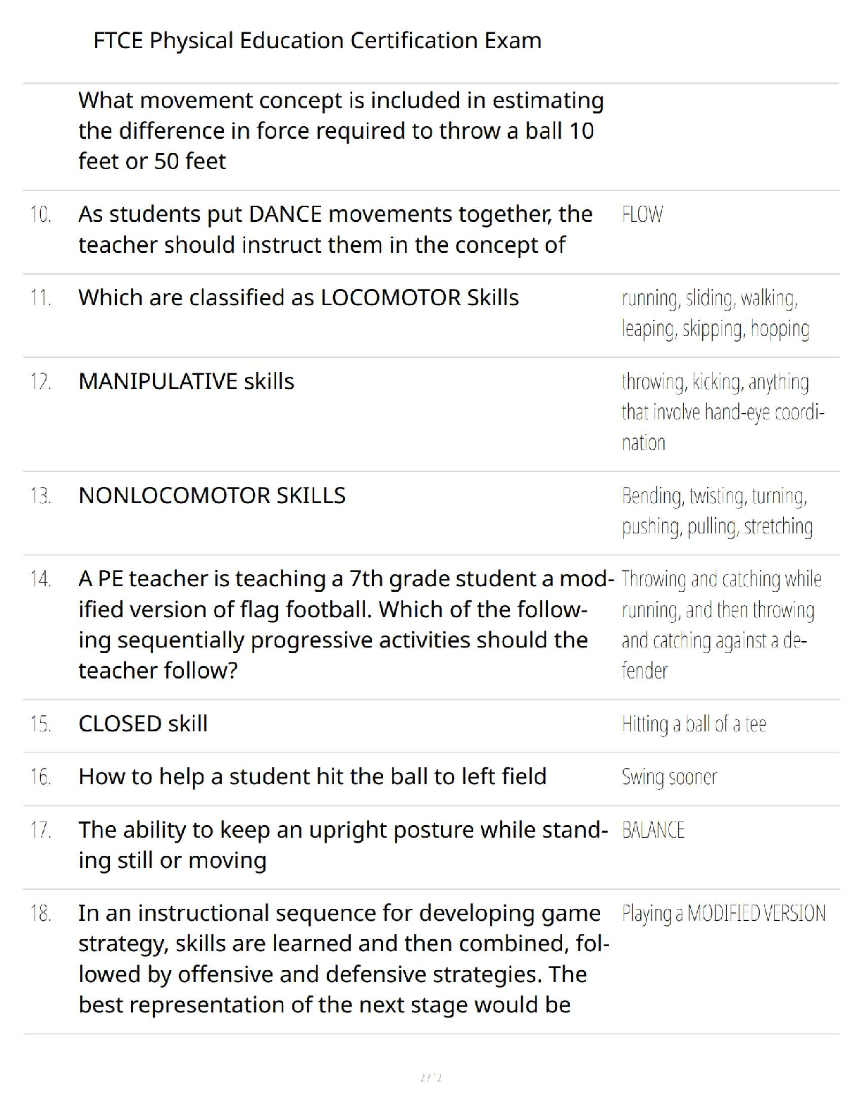 FTCE Physical Education K-12 Certification Exam Test Bank - Latest Edition Study Guide with Verified Questions and Answers