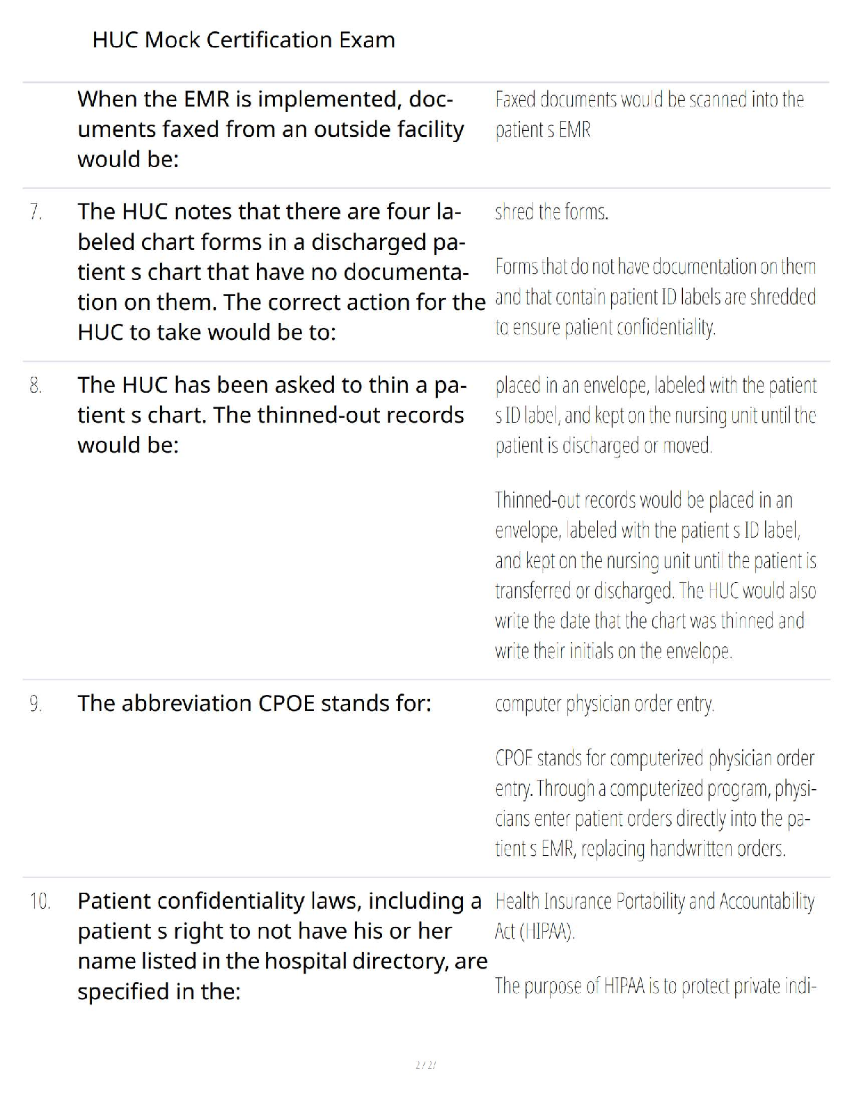 Health Unit Coordinator (HUC) Certification Exam Test Bank 2025/2026: Verified Mock Questions and Answers for First-Attempt Success