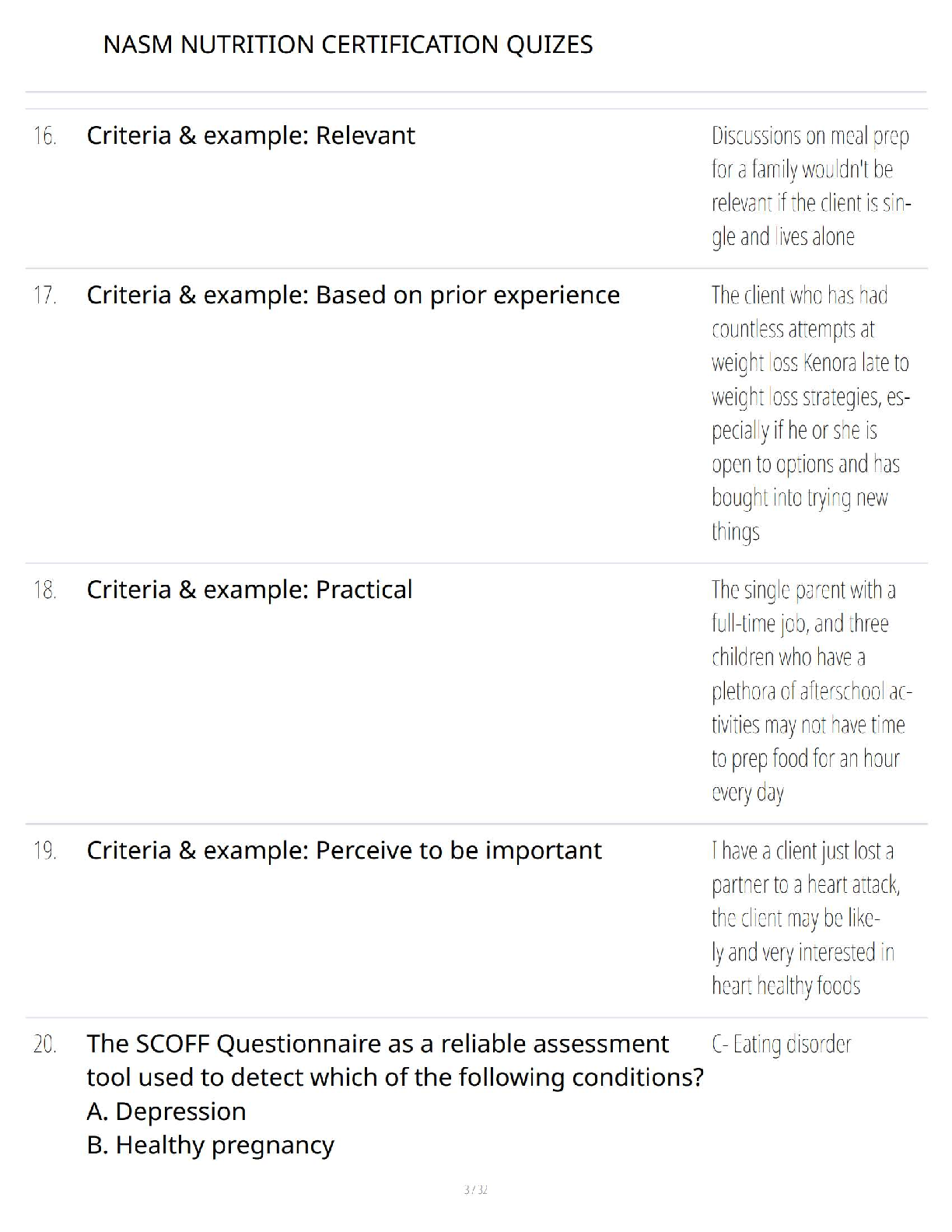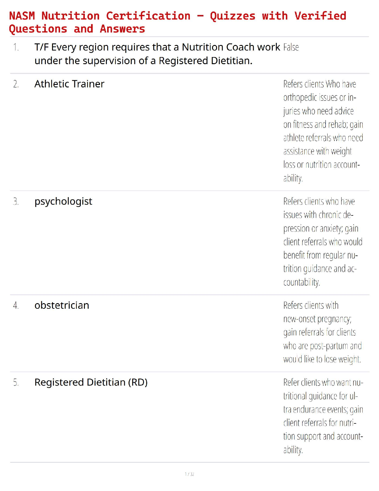 Ace your NASM Certified Nutrition Coach (CNC) exam with this comprehensive test bank. This essential study resource provides a complete collection of verified questions and detailed answers, covering all the critical topics from the official NASM curriculum. Designed to mirror the actual certification exam, this test bank helps you master key concepts, understand the scope of practice for a nutrition coach, and build the confidence needed to pass on your first attempt. Get instant access to the materials that will guide you to success in becoming a NASM Certified Nutrition Coach.