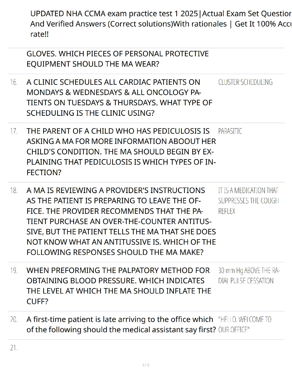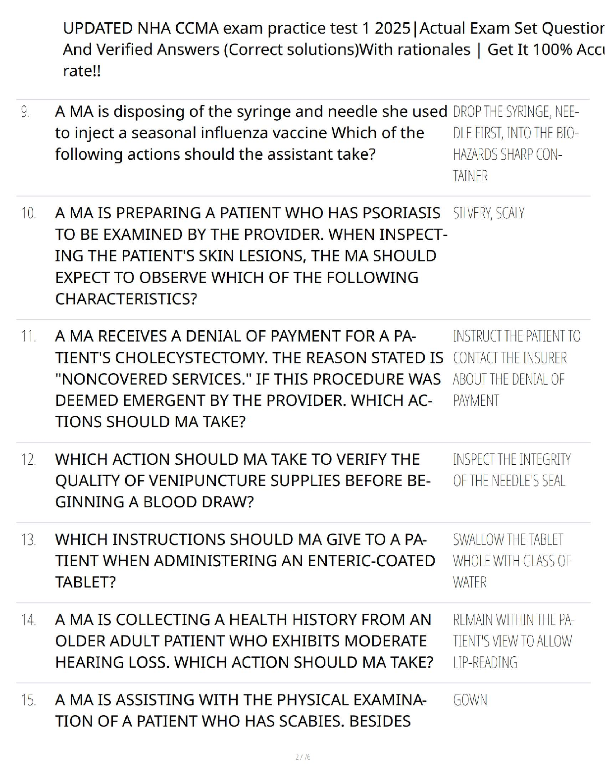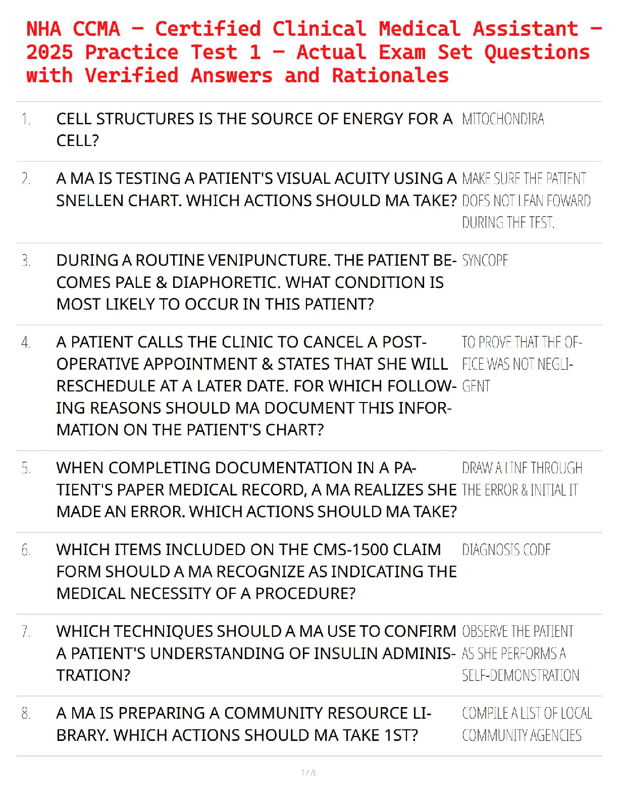 NHA CCMA Test Bank 2025/2026: Official Practice Exam Questions with Verified Answers & Rationales by the National Healthcareer Association - Ace Your Certified Clinical Medical Assistant Exam First Try!