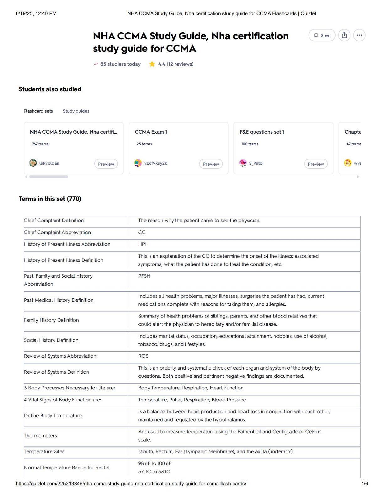 Unlock your potential and secure your Certified Clinical Medical Assistant (CCMA) certification with our comprehensive NHA CCMA Exam Study Guide for the 2025/2026 academic year. This all-in-one resource features an extensive collection of over 770 detailed flashcards and study notes, covering all critical domains of the NHA CCMA exam. Master key concepts such as taking patient histories, conducting a Review of Systems (ROS), understanding vital signs, and much more. Designed specifically to help you avoid resits, our study guide simplifies complex medical terminology and procedures, ensuring you have the knowledge and confidence to pass your exam on the very first attempt. Get the ultimate advantage in your exam preparation today!