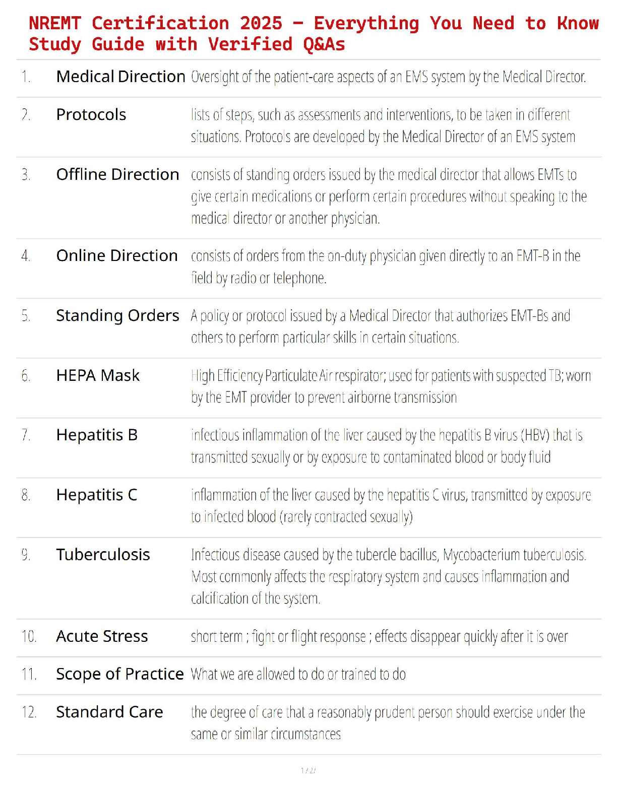 Get ready to ace your NREMT certification exam in 2025 with our all-inclusive study guide and test bank. This resource is meticulously compiled with a full range of verified questions and detailed answers, covering every critical topic you need to know. From medical direction and protocols to emergency care procedures and patient assessment, this guide provides the essential knowledge to help you pass on your first attempt. Stop worrying about resits and start studying with confidence using this expertly crafted NREMT 2025 exam preparation tool.