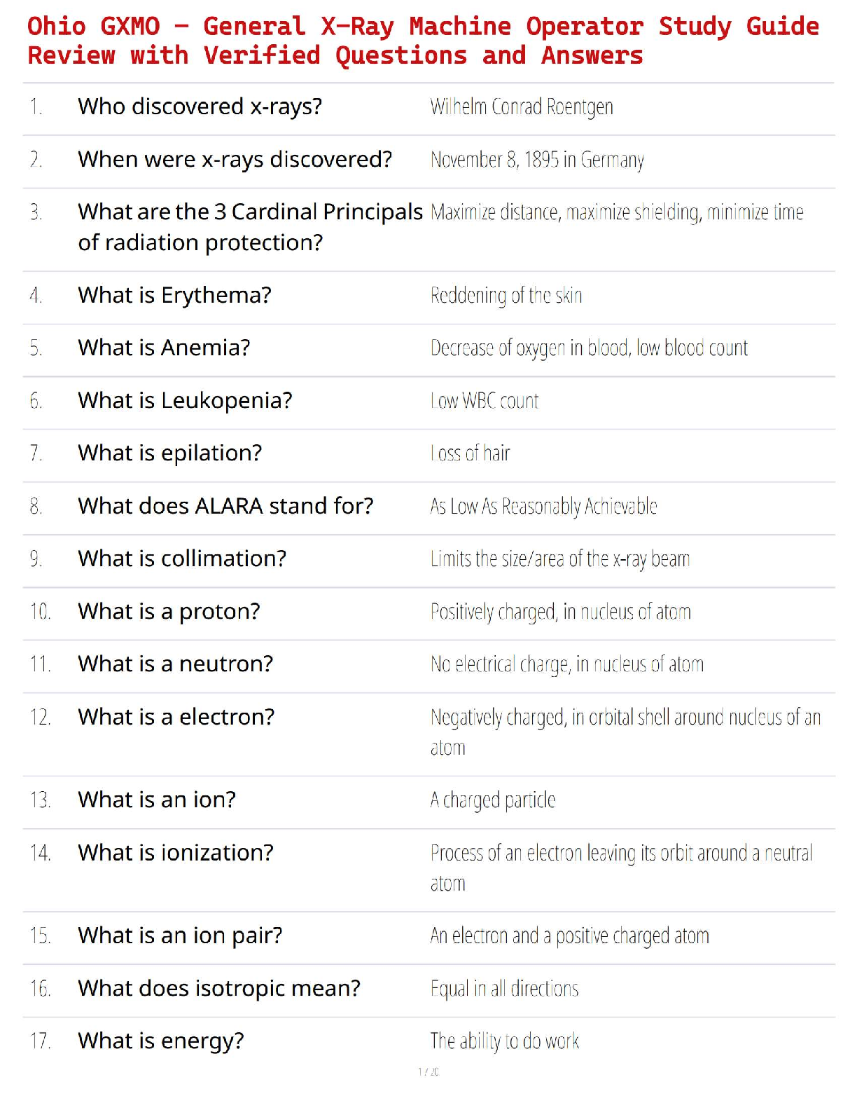 Prepare to ace your Ohio General X-Ray Machine Operator (GXMO) certification exam with our latest and most comprehensive test bank. This study guide features a complete collection of verified questions and detailed, 100% correct answers, meticulously designed to help you pass on your first attempt. Master crucial topics such as the principles of radiation protection (ALARA), the fundamentals of x-ray physics, atomic structure, and key terminology. This is the ultimate resource to build your confidence and ensure success in your GXMO examination.