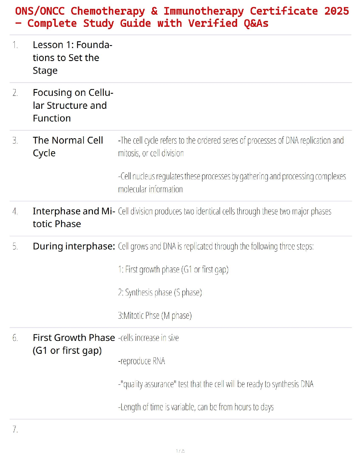 Ace your ONS/ONCC Chemotherapy & Immunotherapy Certificate exam with our comprehensive 2025 test bank! This complete study guide features a collection of verified questions and answers, meticulously designed to cover all essential topics from the ground up, starting with foundations like cellular structure and the normal cell cycle. Our resource is structured to provide a deep understanding of complex concepts, ensuring you are fully prepared to pass your certification on the first attempt. Avoid resits and gain the confidence you need with the most up-to-date material for the 2025/2026 academic year. Get immediate access to this essential study tool and fast-track your oncology nursing career.